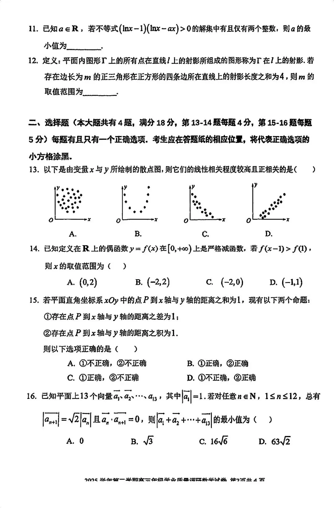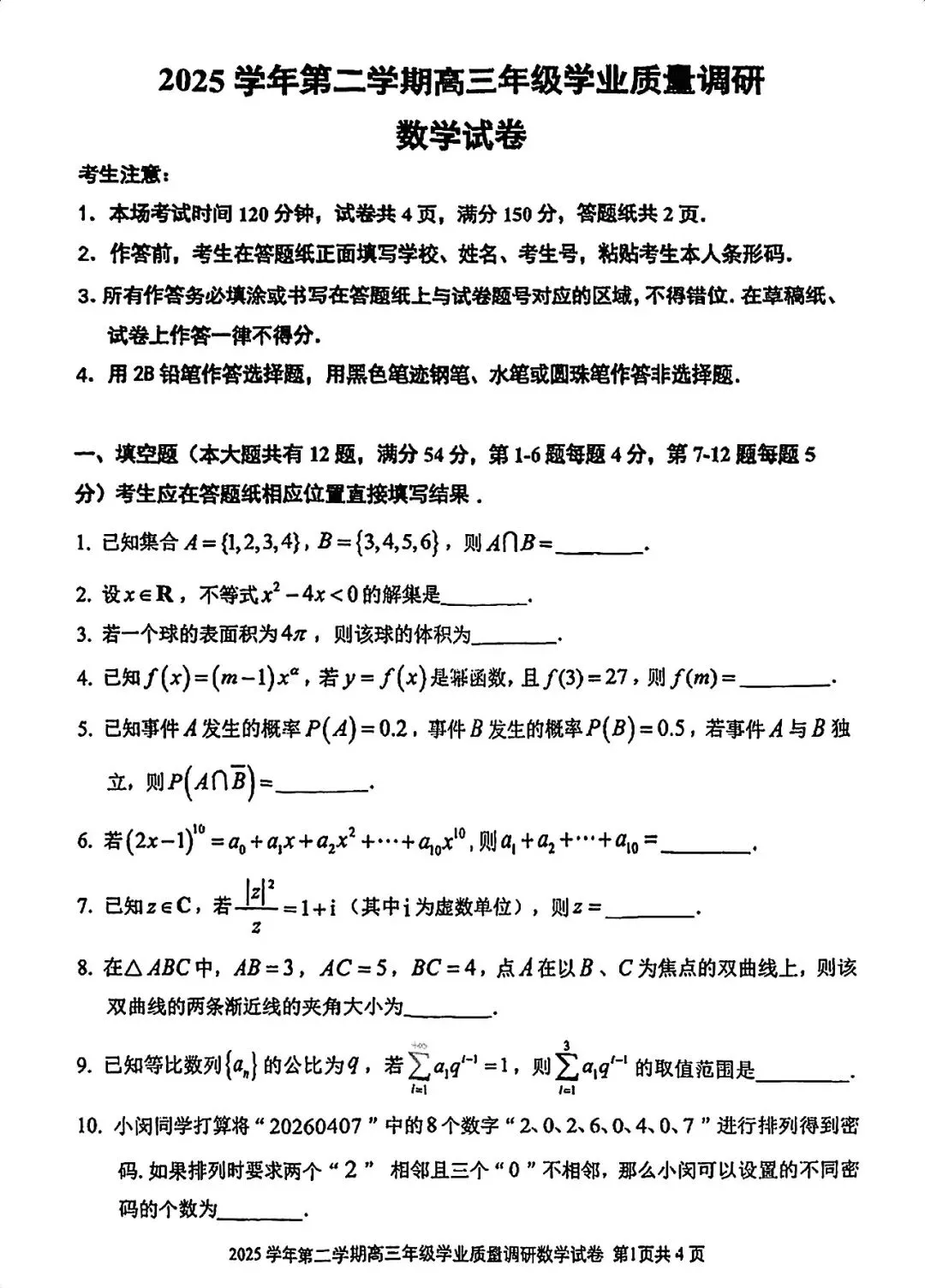>2026年闵行/嘉定高三二模数学试卷分享!