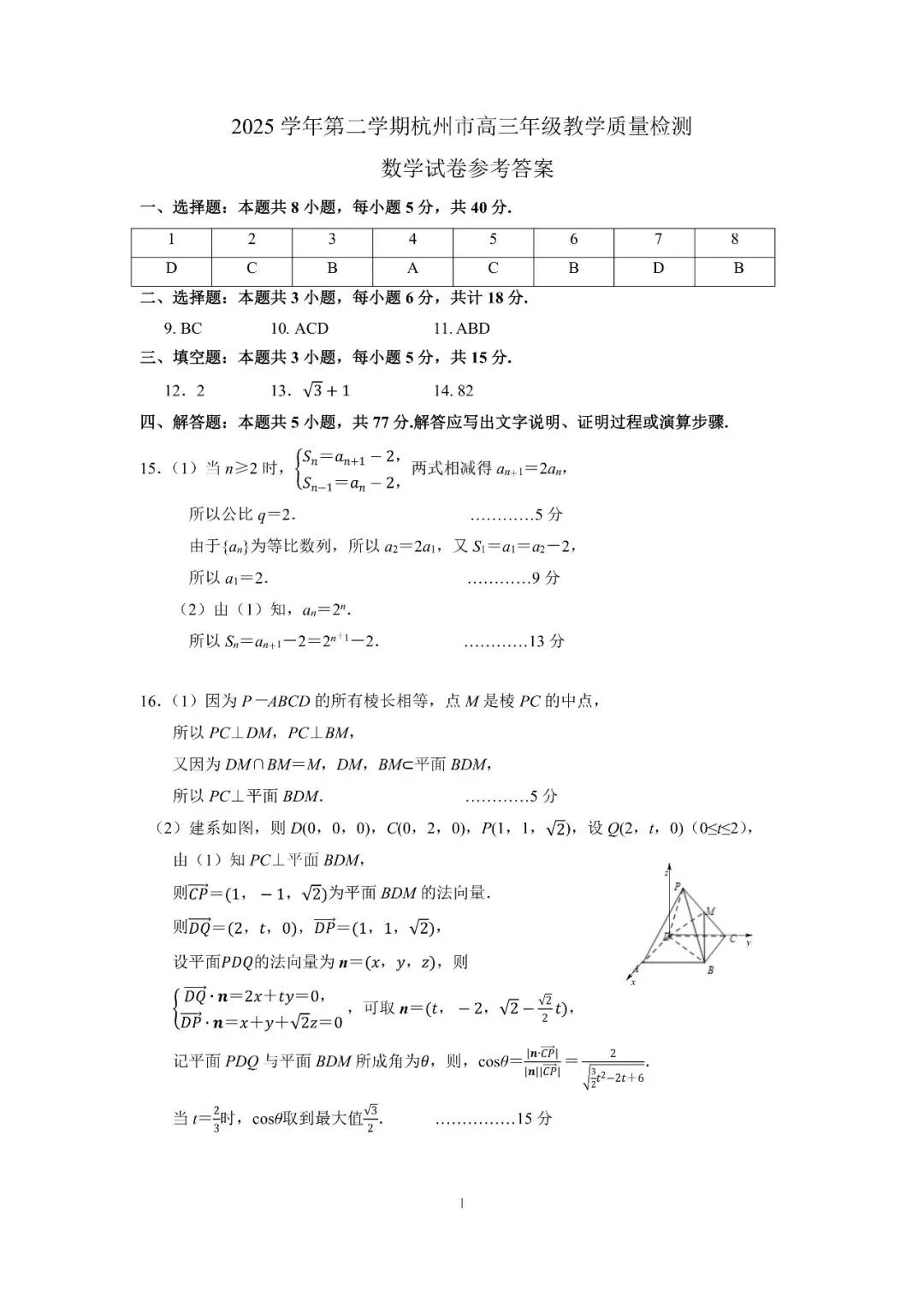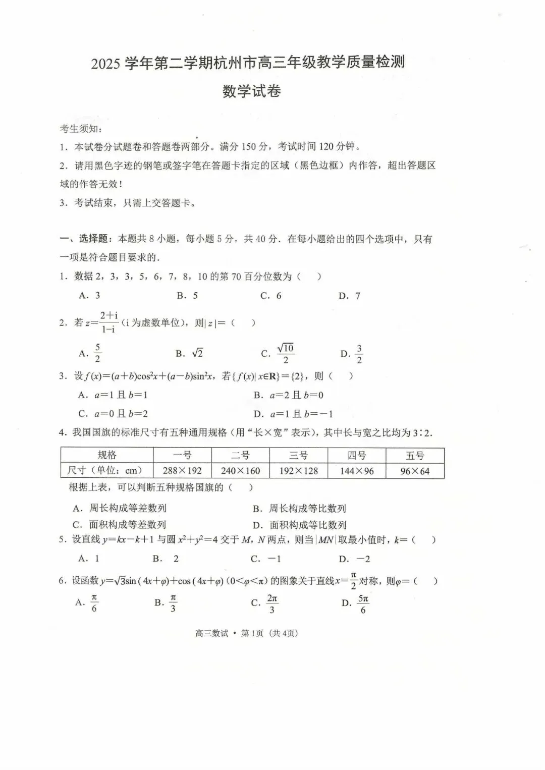 2026年4月杭州市高三二模考试数学试卷及答案!有需要文件的,免费领取