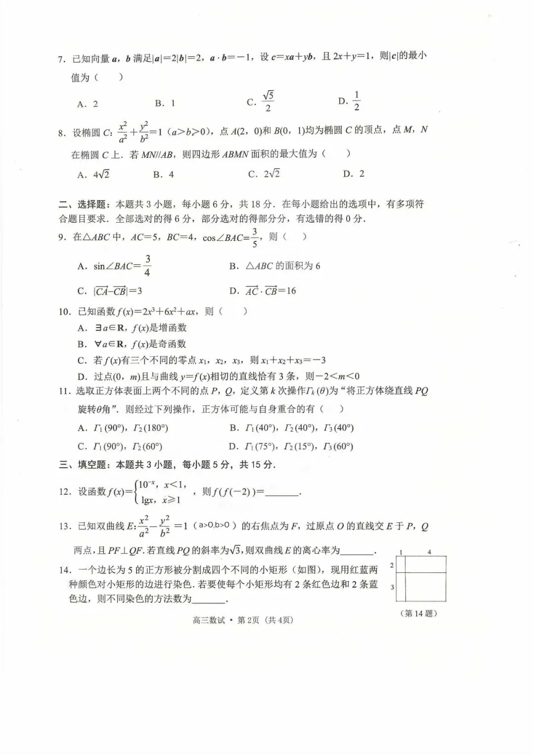 2026年4月高三杭州二模数学试卷及答案