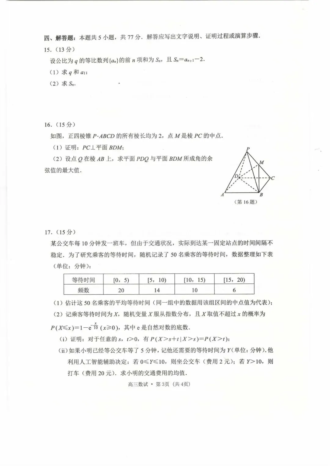 2026年自治区三模数学试卷及答案(四月适应性检测)