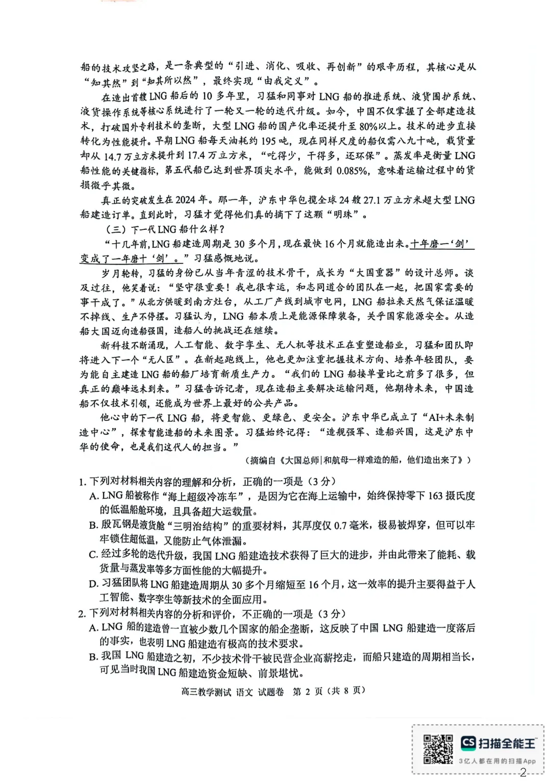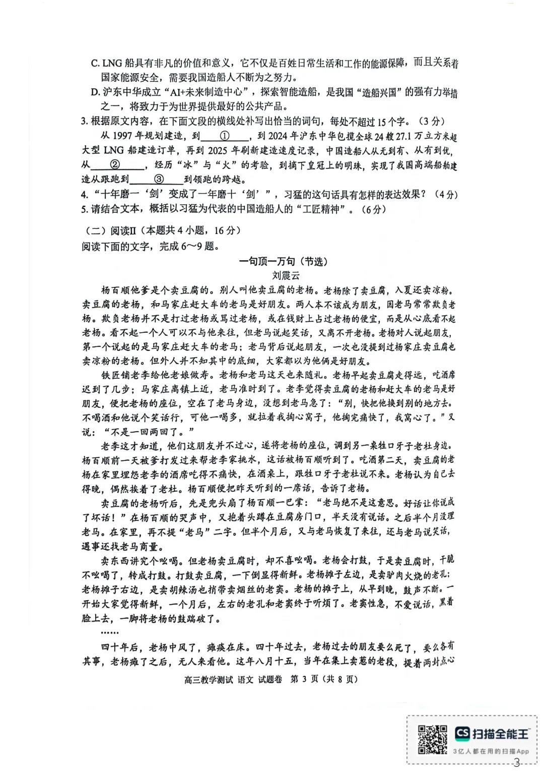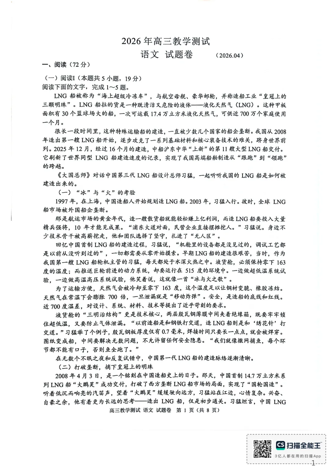 2026.4辽宁沈阳高三二模数学、语文试卷