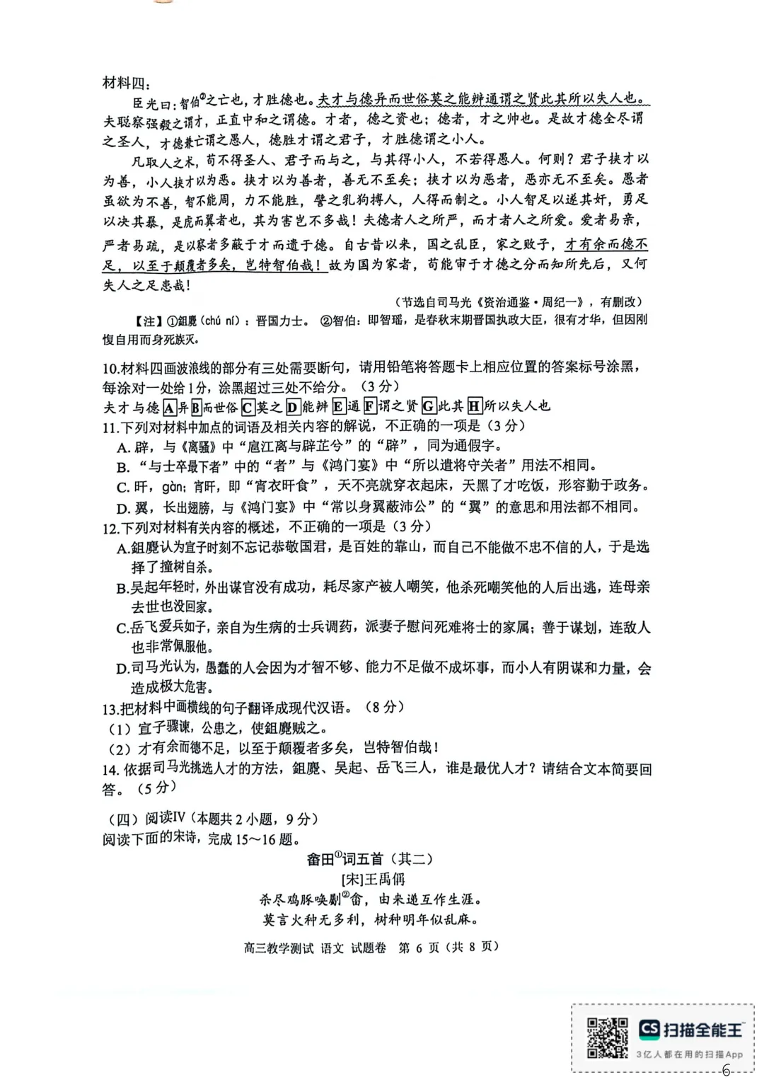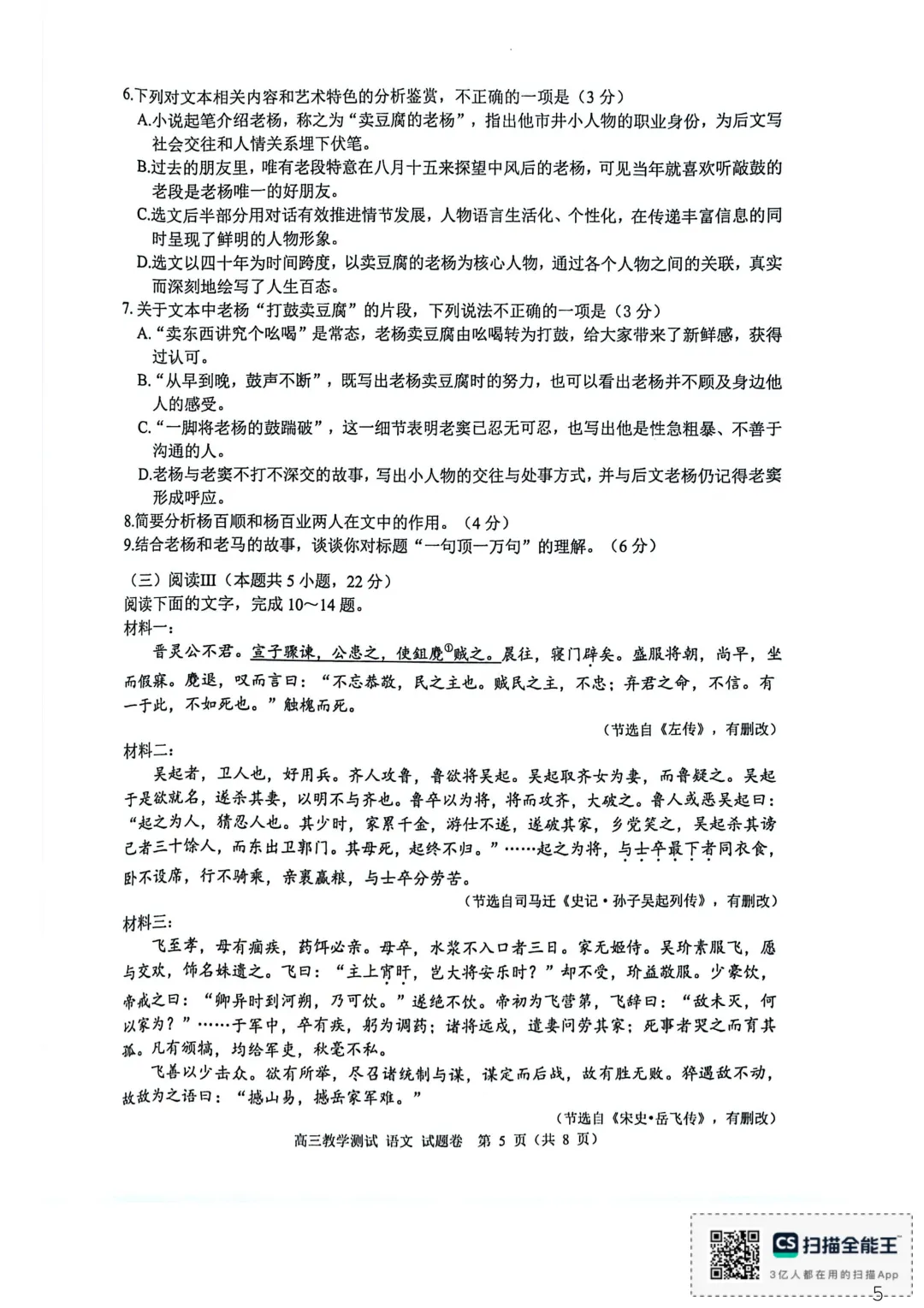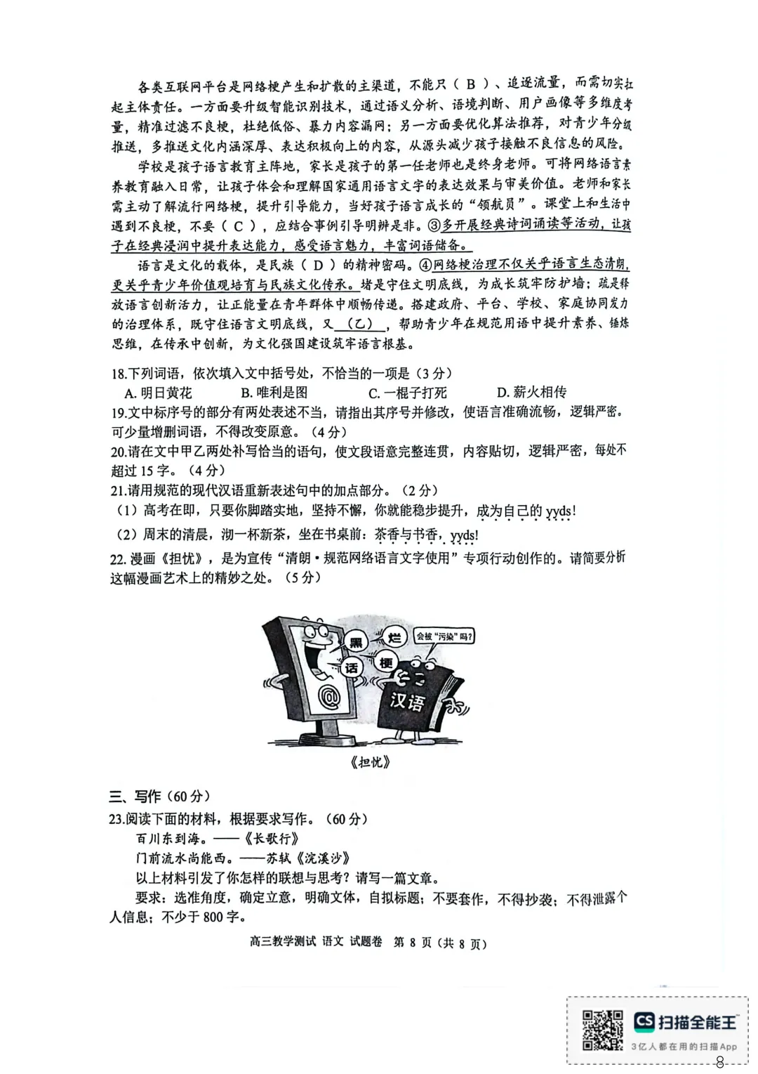 2026.4辽宁沈阳高三二模数学、语文试卷