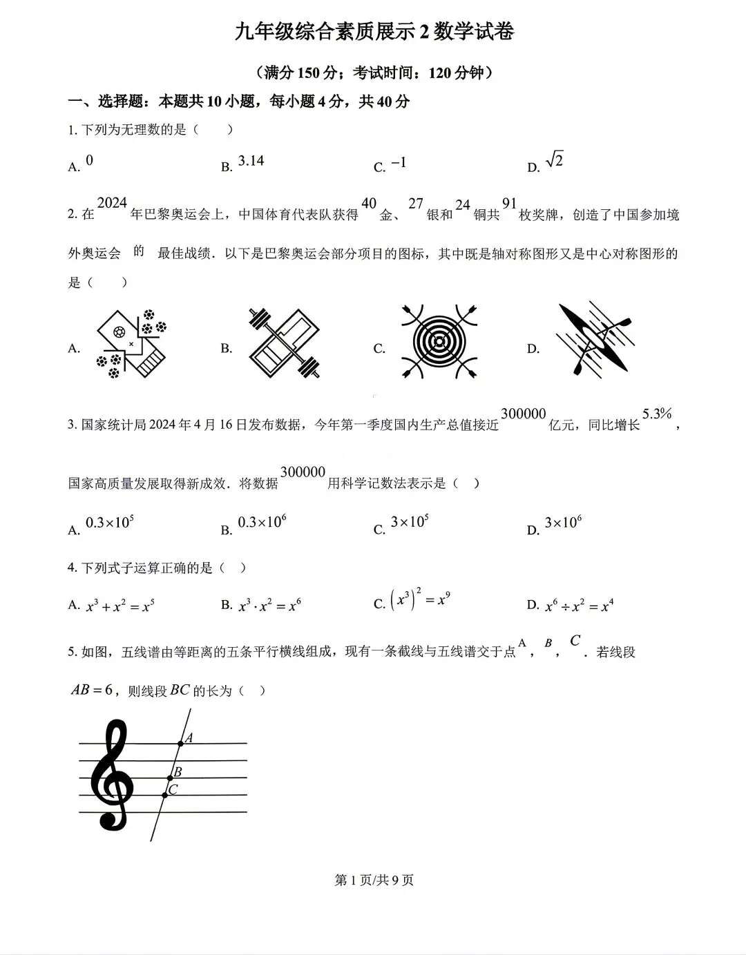 2026武汉中考模拟数学试卷(一)