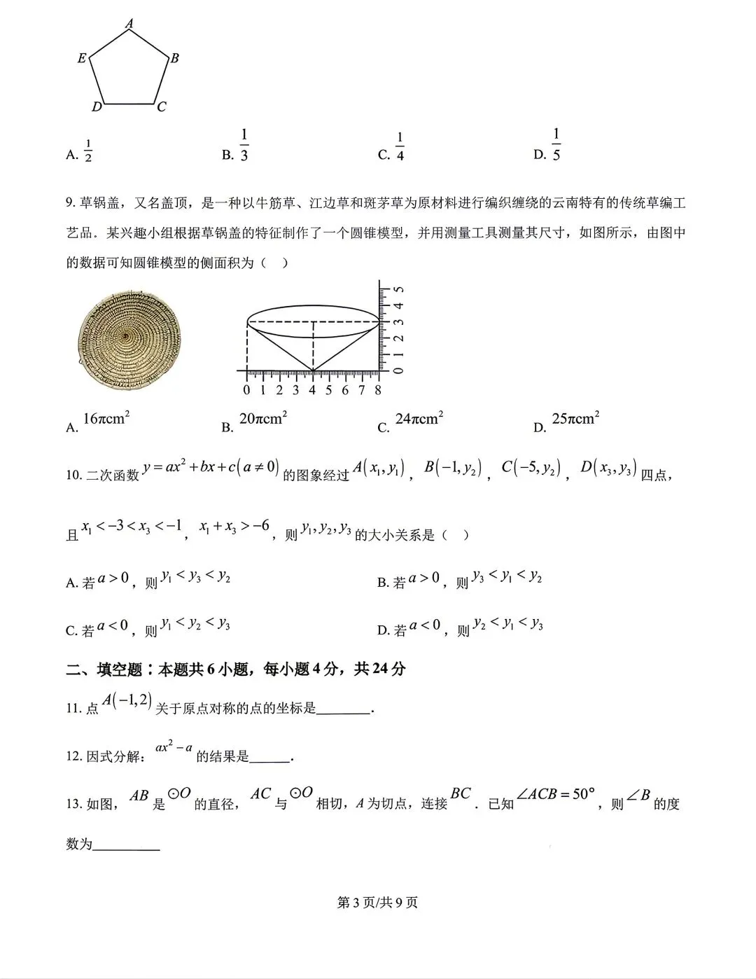 >【试卷分享】2024-2025学年第二学期九年级下册数学期中试卷