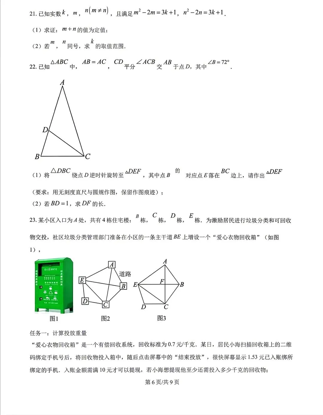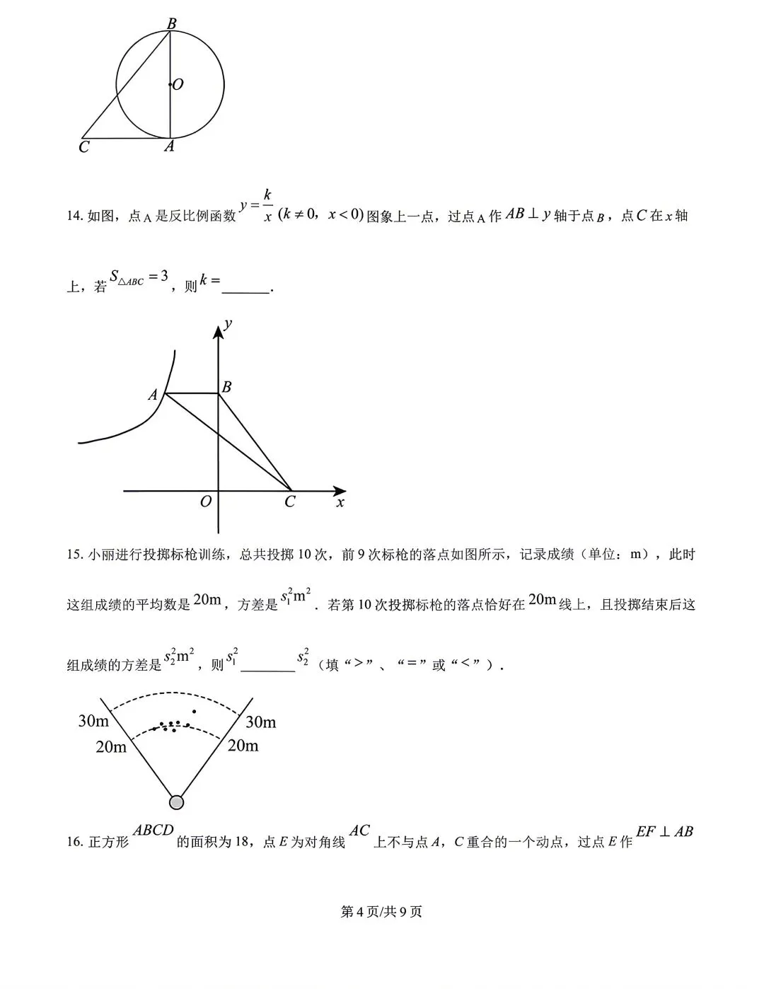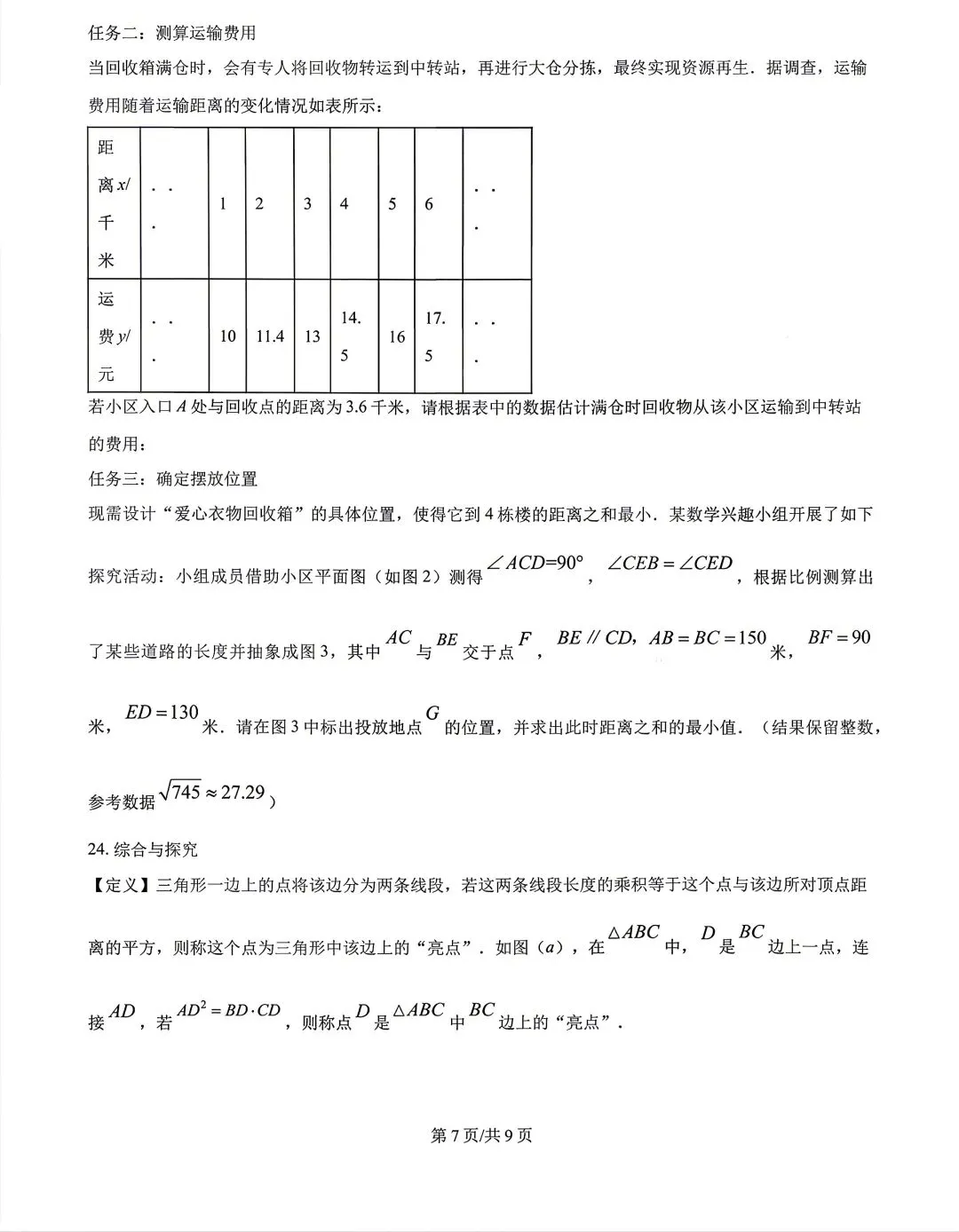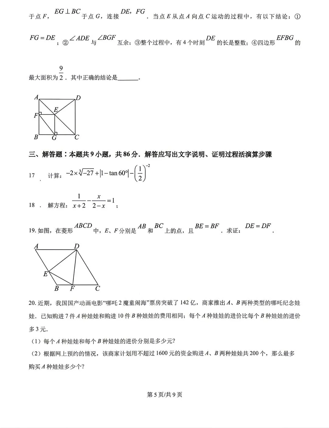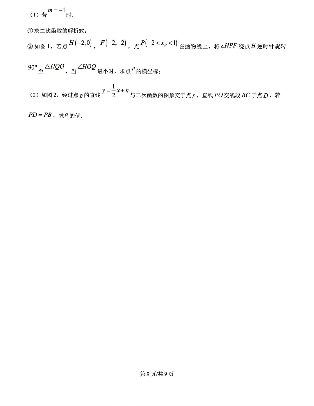 【试卷分享】2024-2025学年第二学期九年级下册数学期中试卷