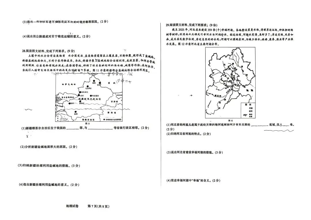 >邯郸23中八年级下册地理模拟试卷
