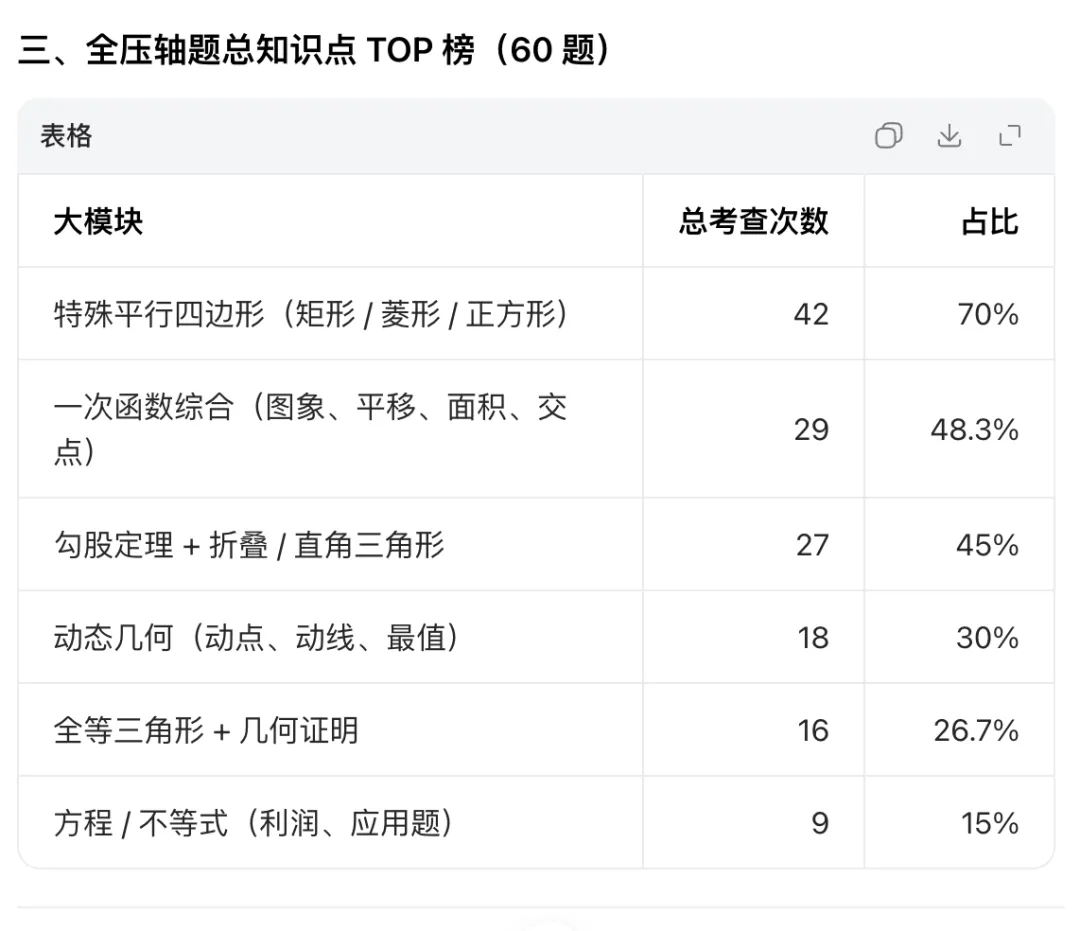 1、重中之重:特殊平行四边形(矩形、菱形、正方形)的性质 + 判定 + 综合证明,覆盖70% 压轴题。
