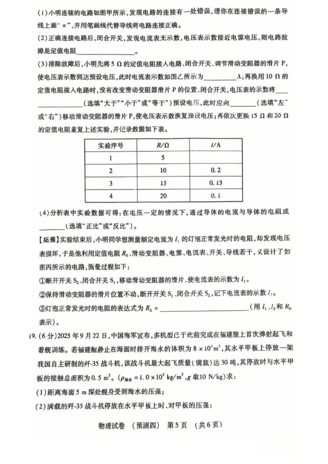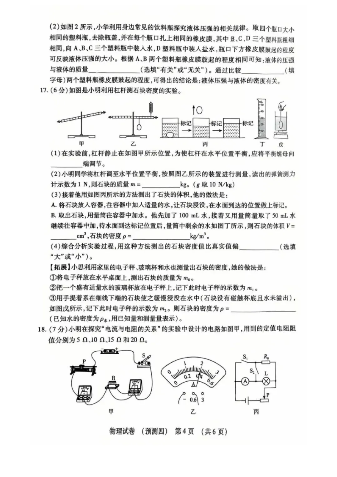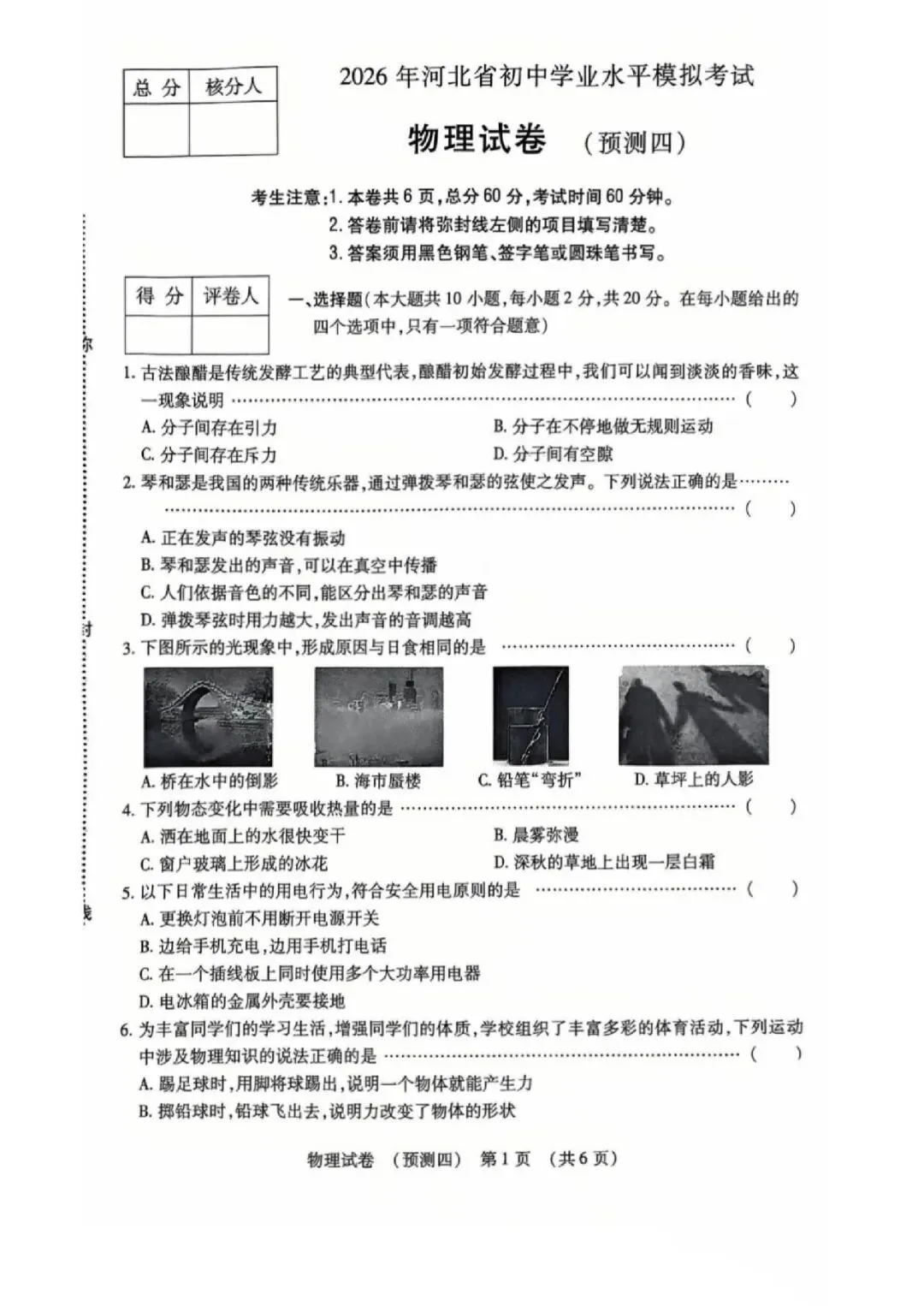>26年河北省初中学业水平模拟考试物理试卷预测四含参
