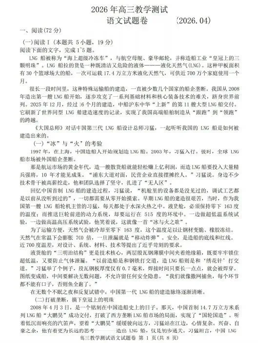 >嘉兴二模2026年嘉兴市高三教学测试试卷及答案