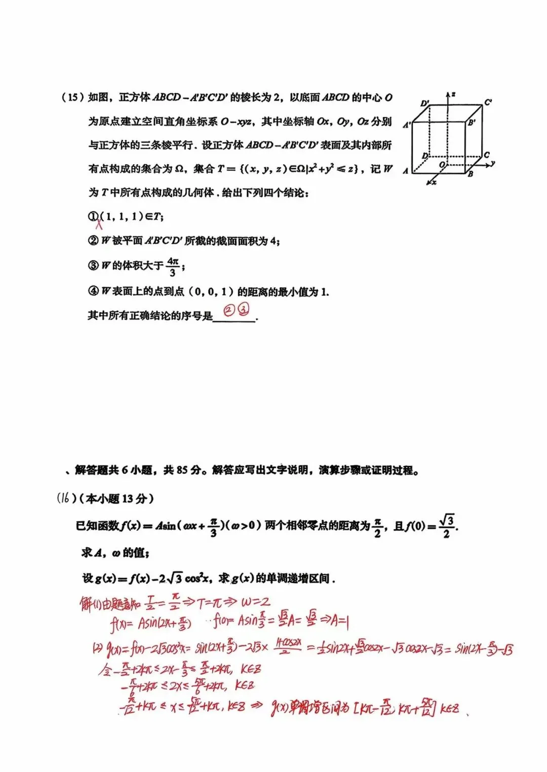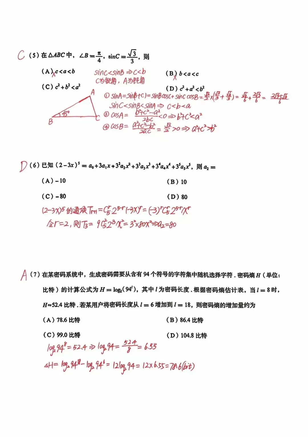 下面仅为个人自解,非标准答案(答案基本正确)
