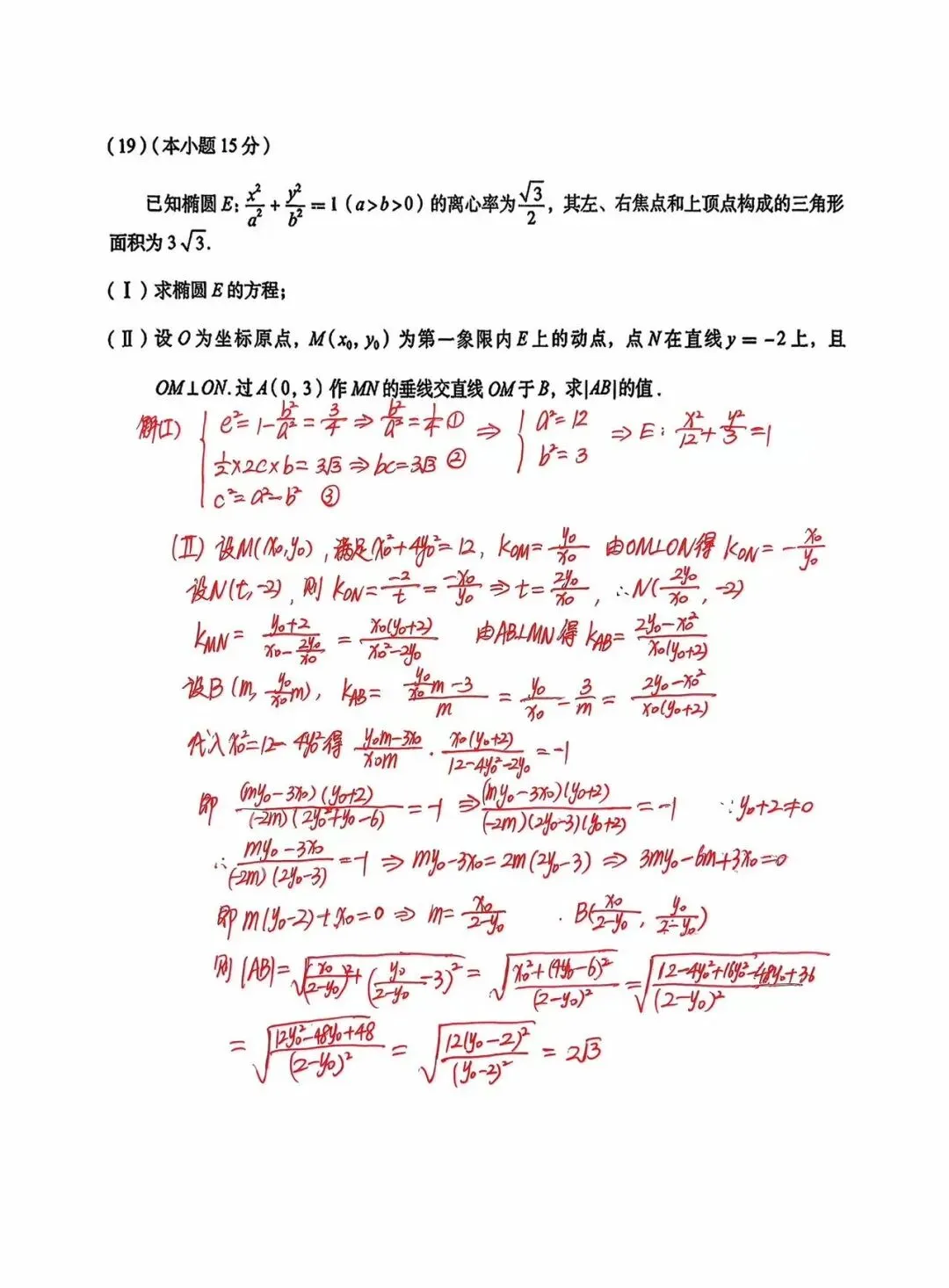 19题圆锥曲线计算量比较大,但是难度适中,属于定值问题的一种。