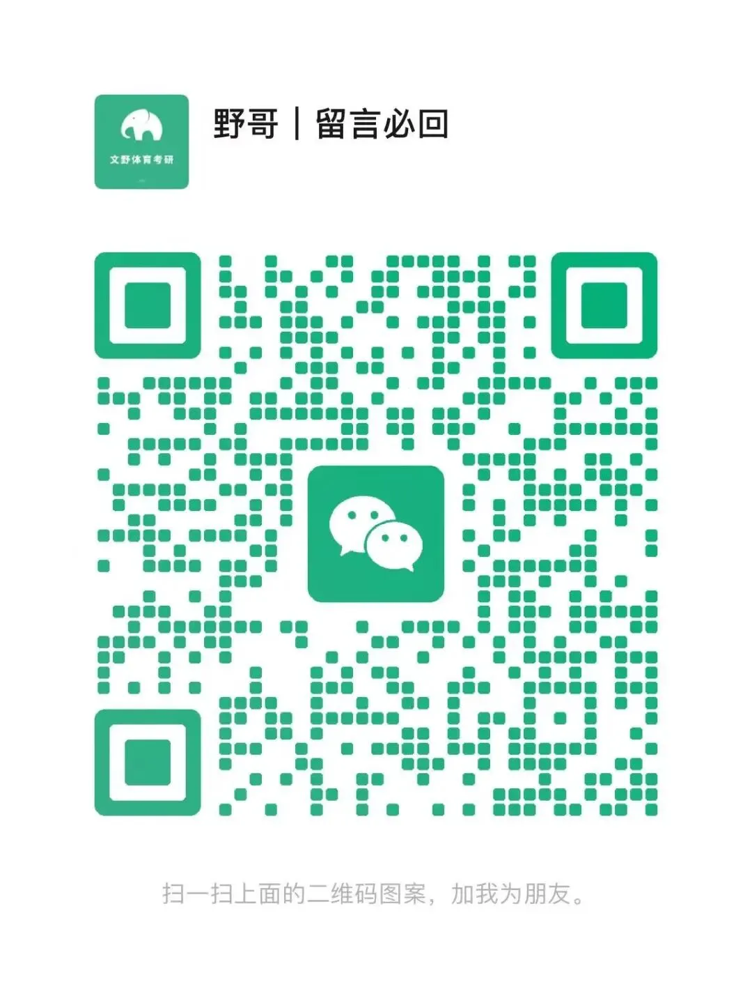 考研只报考1个专业,所以一般只可领取1份真题。如有特殊情况,可联系野哥协商沟通。4. 27体育考研【微信群】,沟通交流,资料分享,最新研招动态,小道消息等,扫码加入