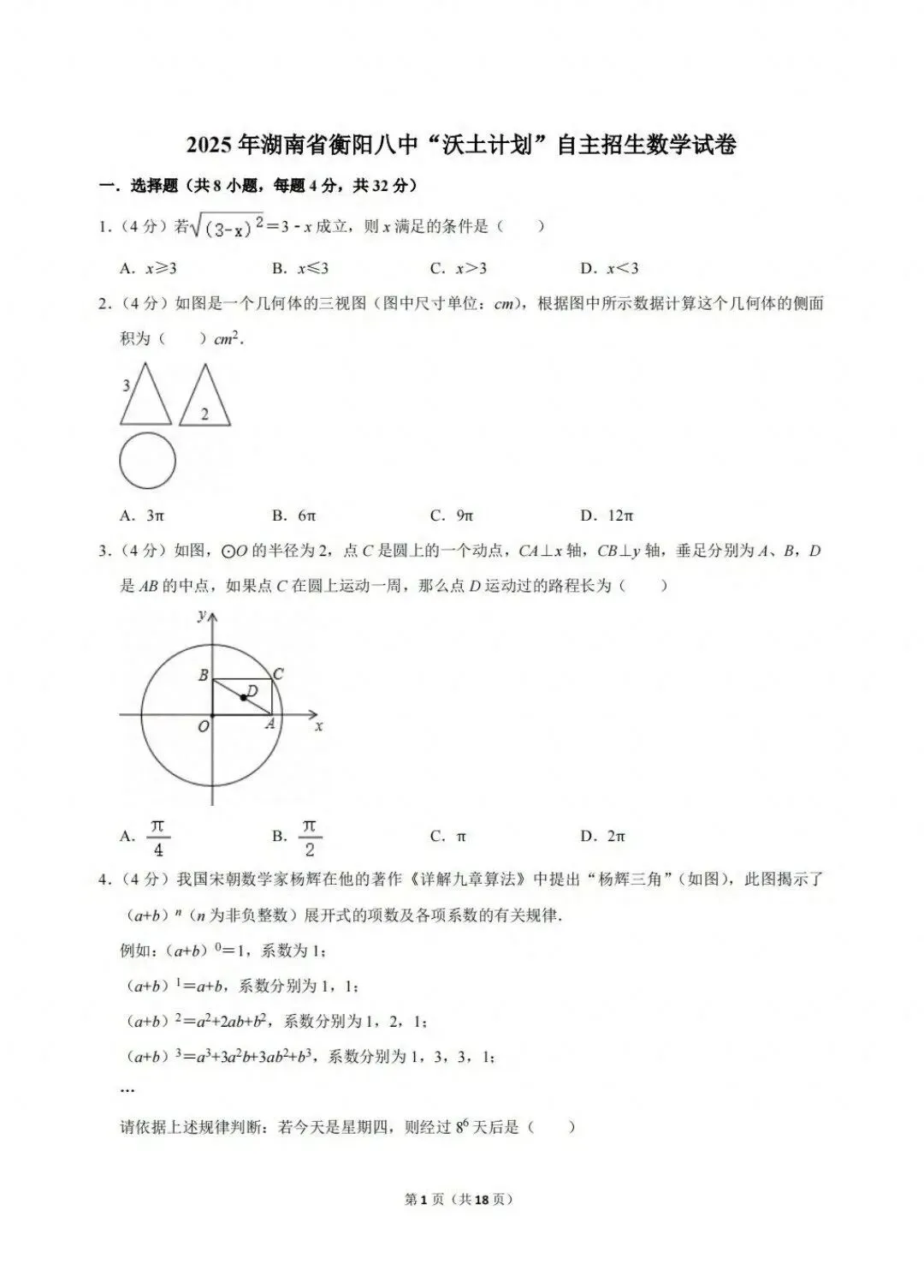 衡阳市八中的这套自主招生数学试卷,试卷由易至难,梯度比较大,有基础题,有中档难度的题,也有一部分比较难的题。比中考题难度大一点,但又比很多顶级中学的自主招生题容易。