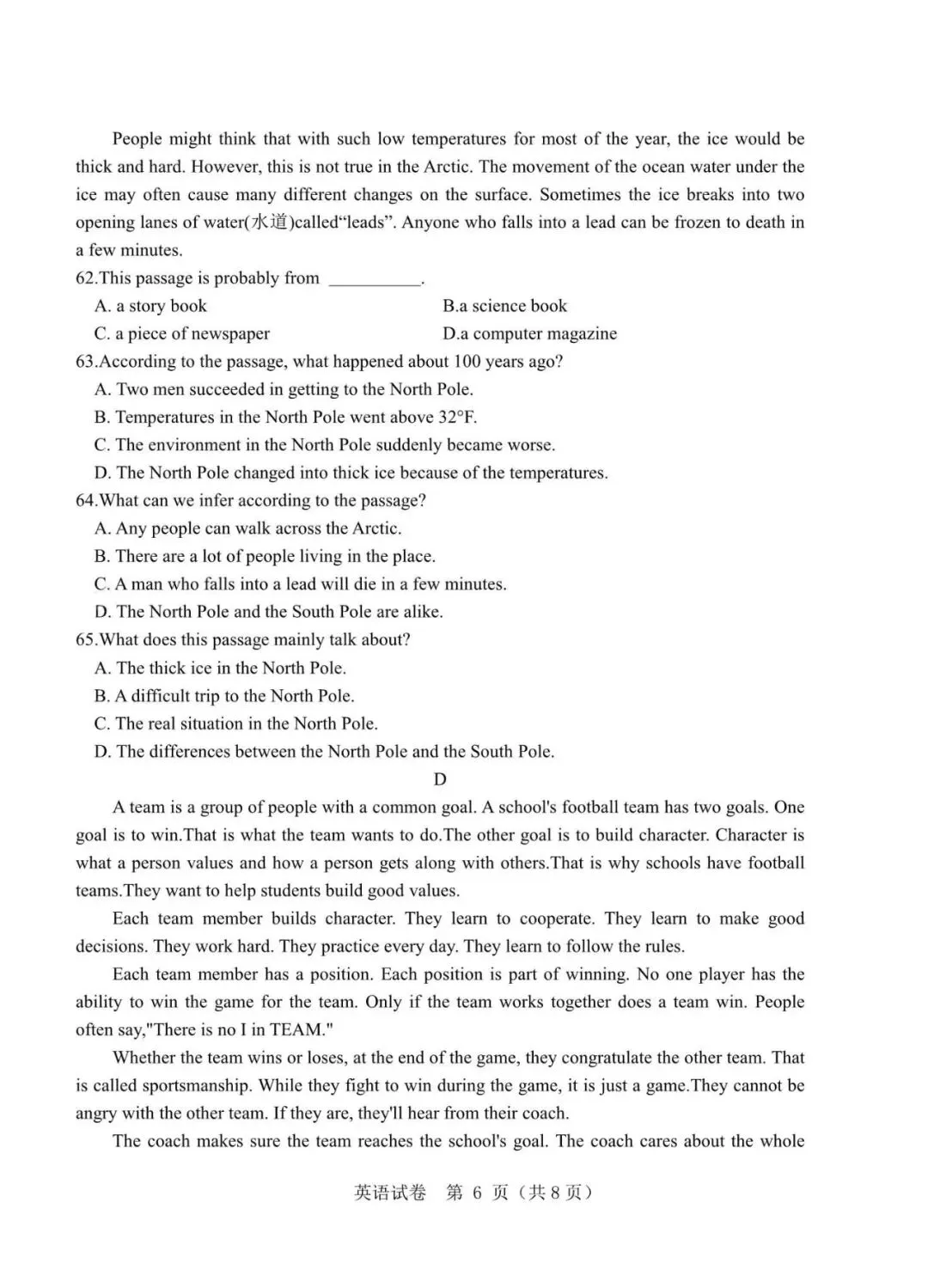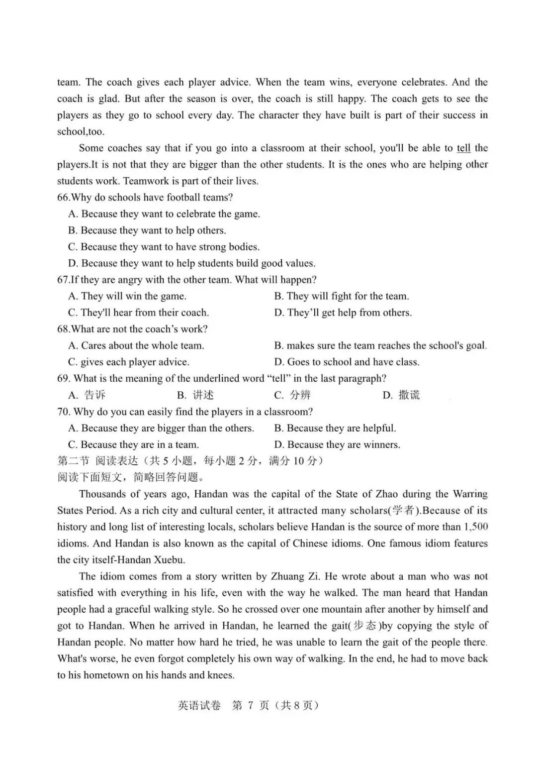 温馨提示:清晰版试卷和答案在下载地址里找,网盘免费下载