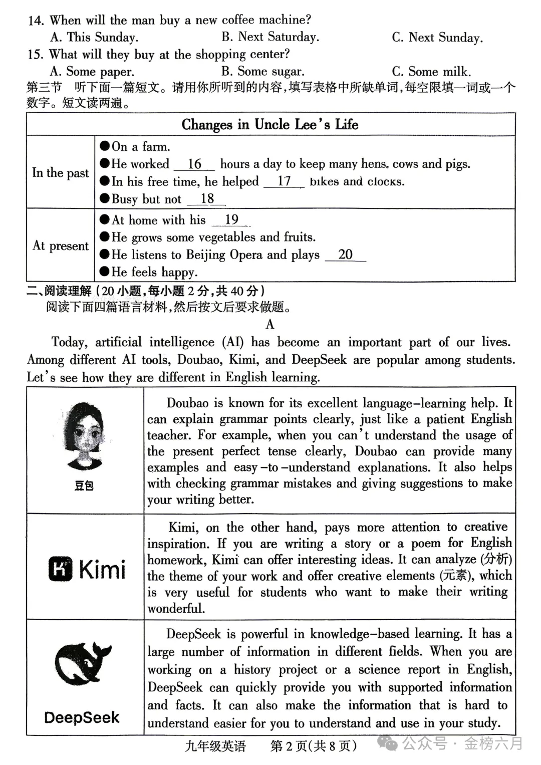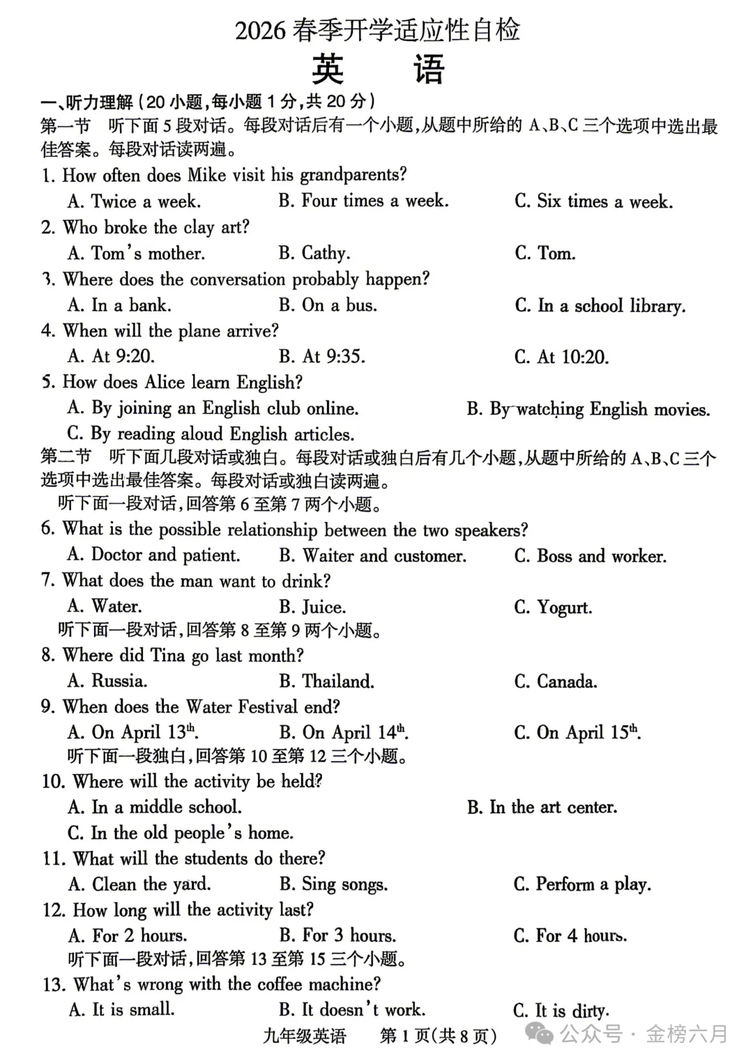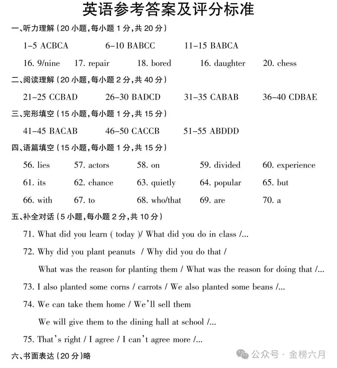 温馨提示:清晰版试卷和答案在下载地址里找,网盘免费下载