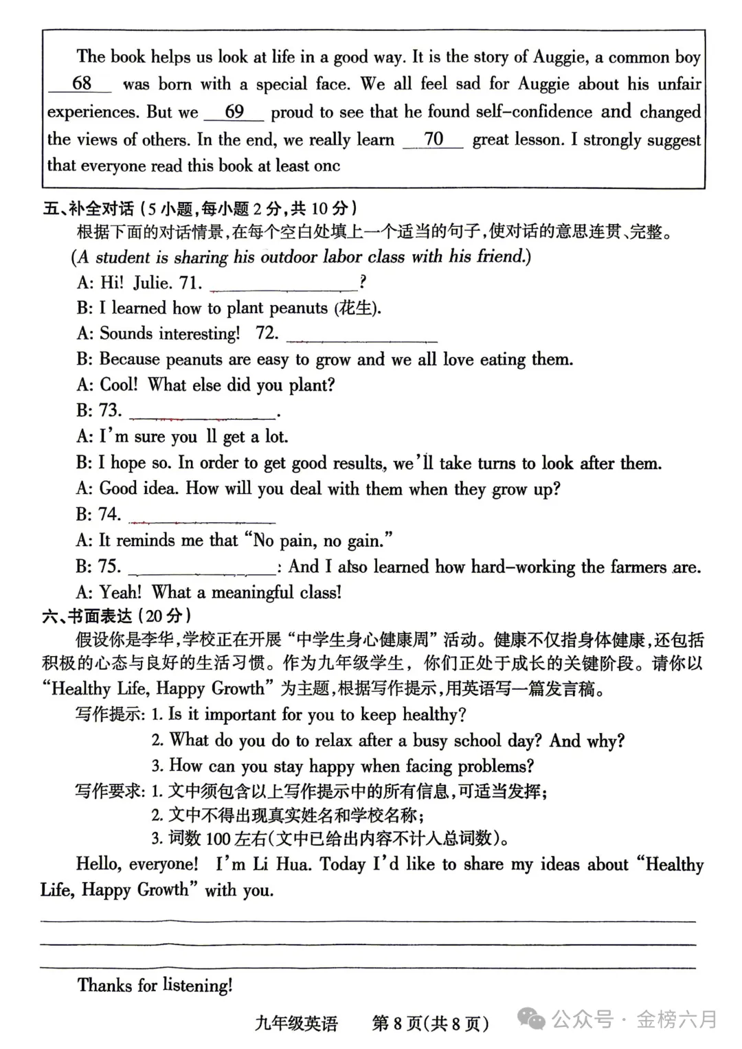 夸克「2025春季学期初中月考期中期末试卷汇总」