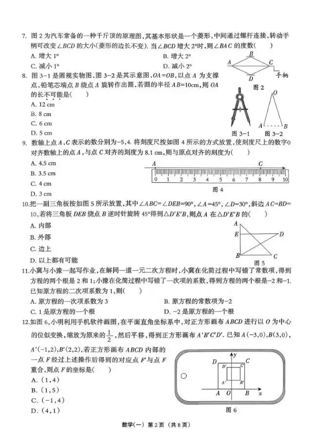 2026.3河北中考模拟数学试卷摸底一二