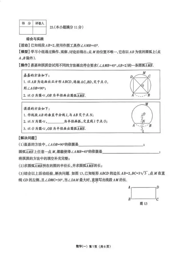 26.3河北省中考石家庄裕华区一模数学试题及答案