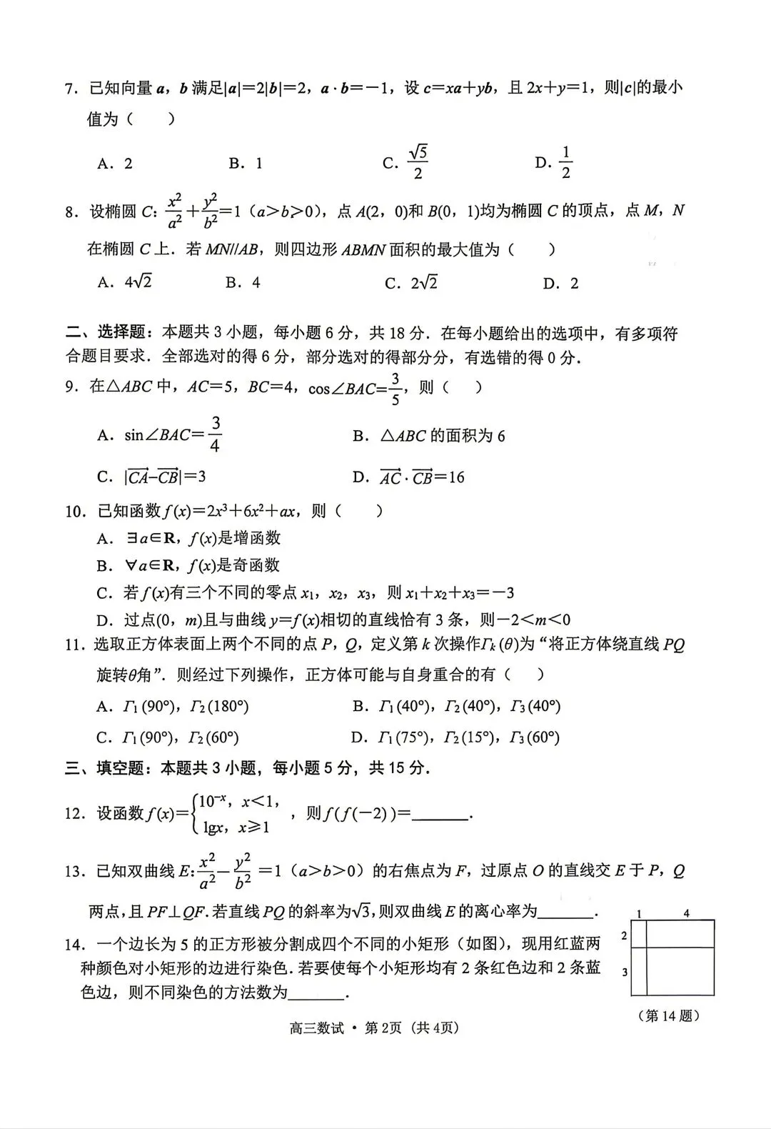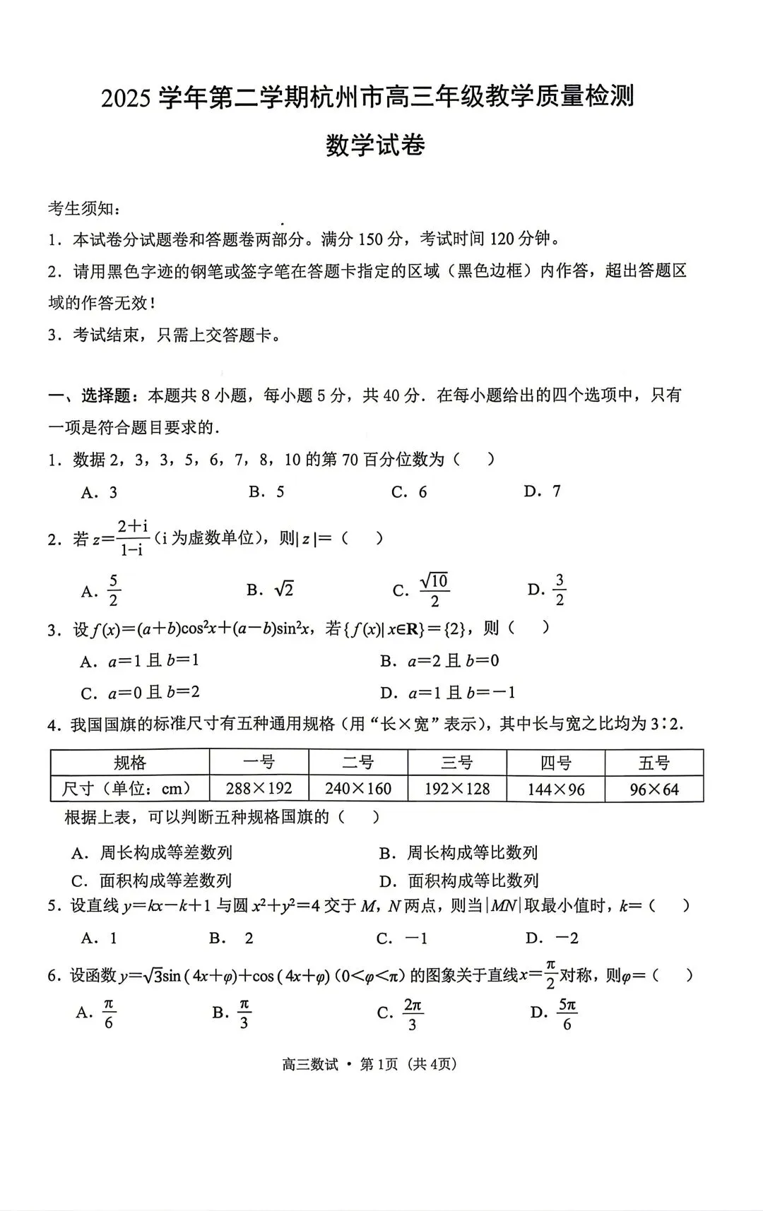 25-26杭州高三二模数学试卷