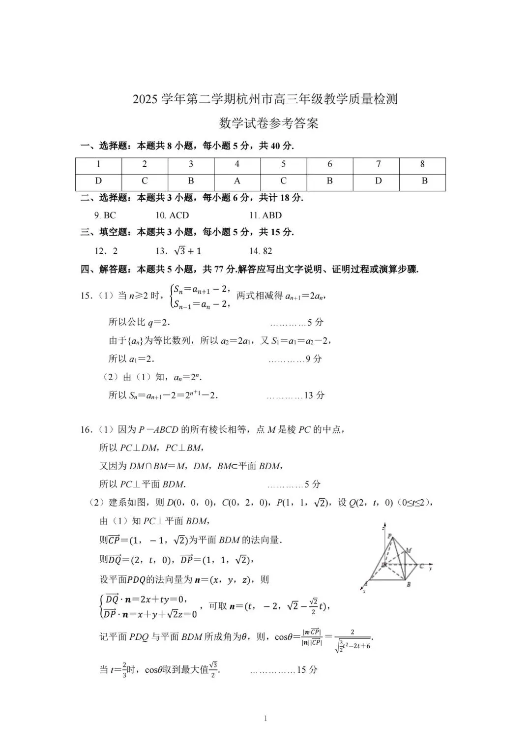 >25-26杭州高三二模数学试卷