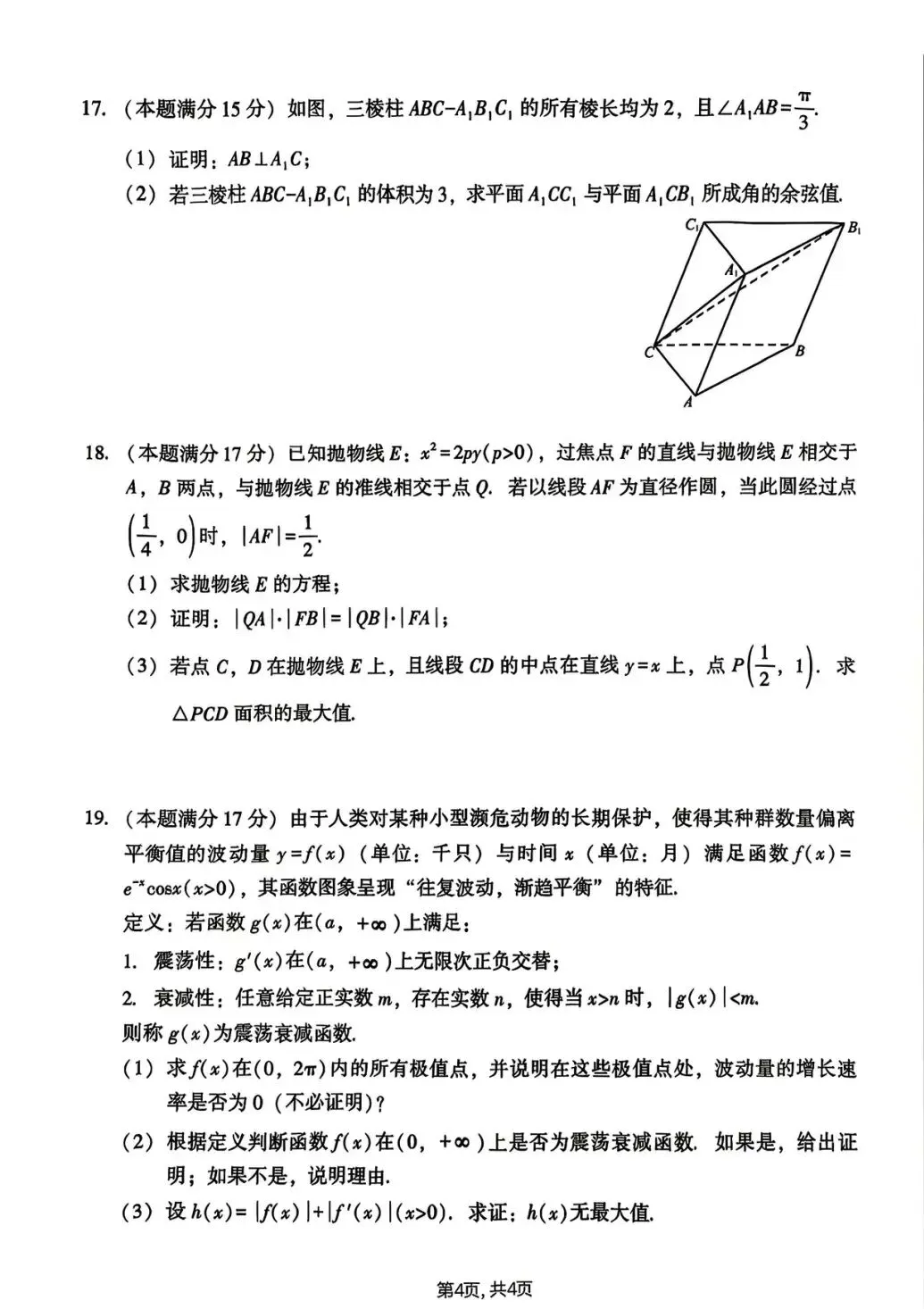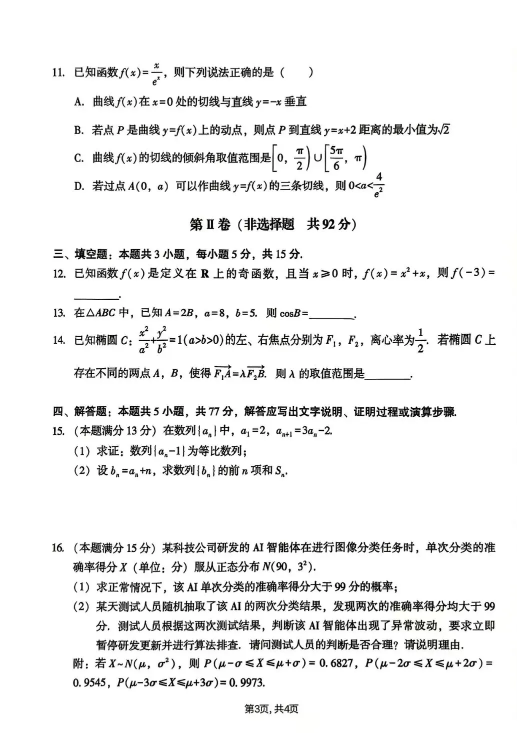25-26杭州高三二模数学试卷