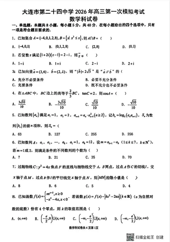 【试卷+答案】4月9日安徽A10联盟2026届高三4月质量检测评估全科及答案汇总