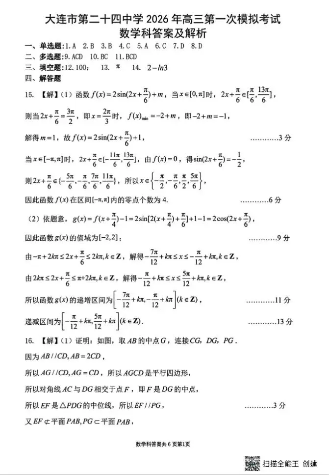2026.4焦作市中考一模全科试卷含答案(可下载)