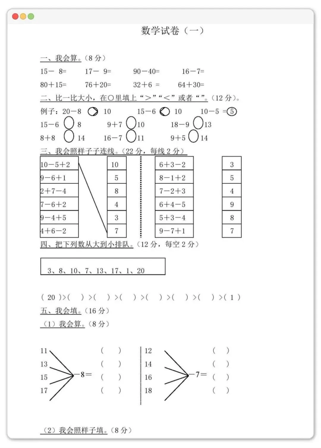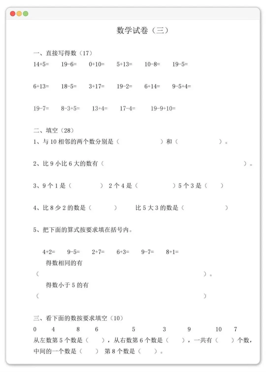 幼小衔接数学试卷35套!一天一套,让孩子轻松拿下计算关