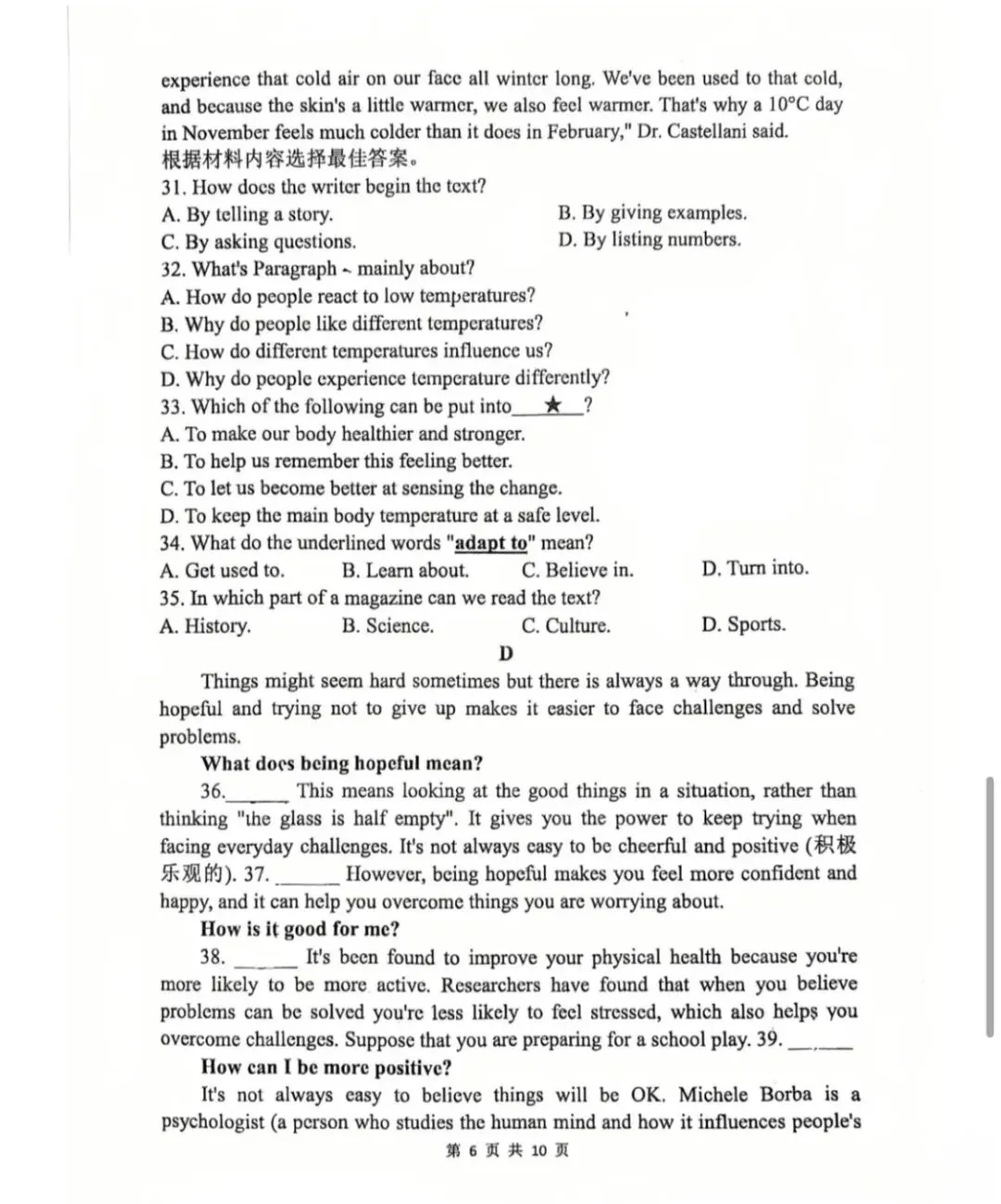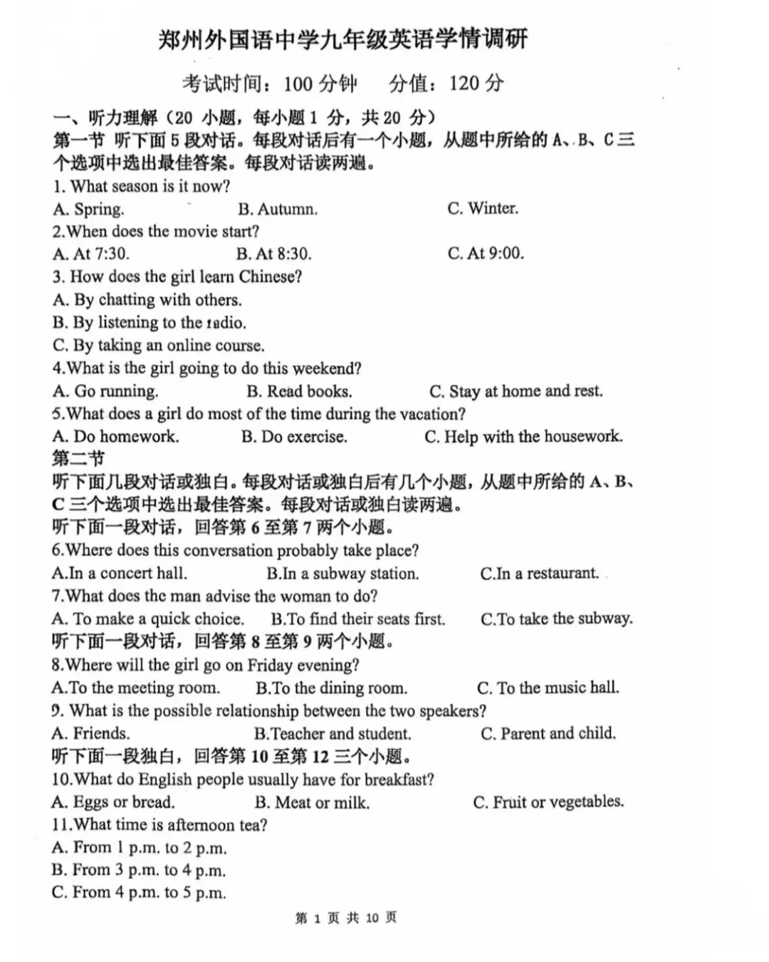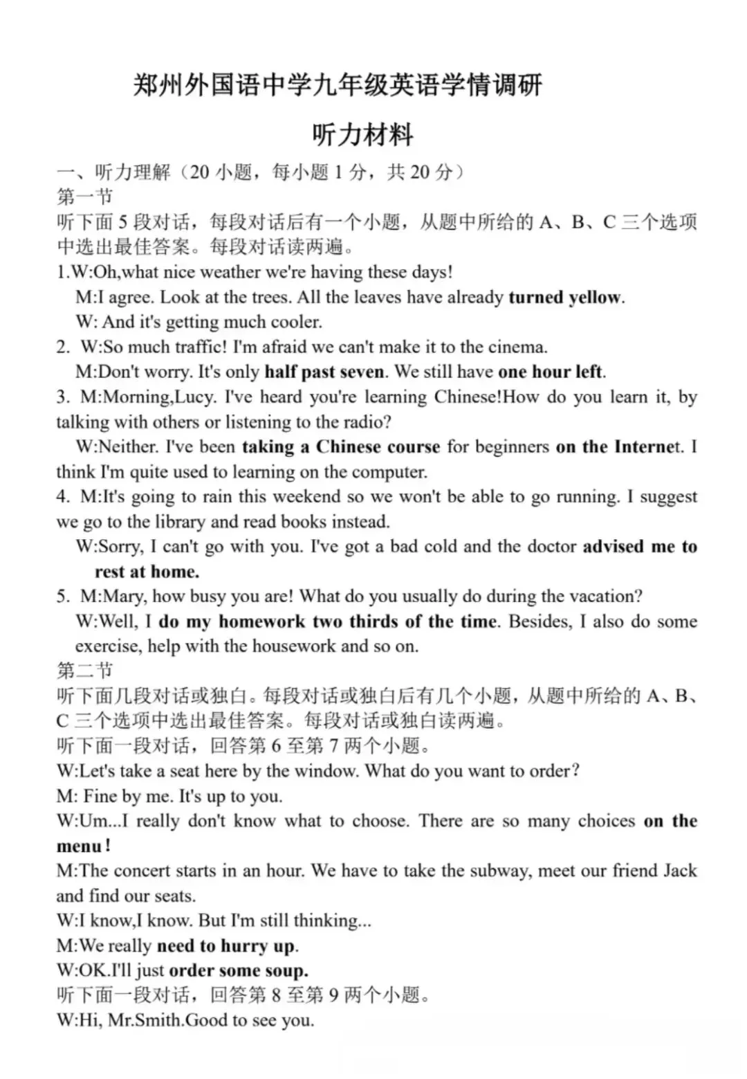 >25-26郑州外国语中考一模试卷(附听力及答案)