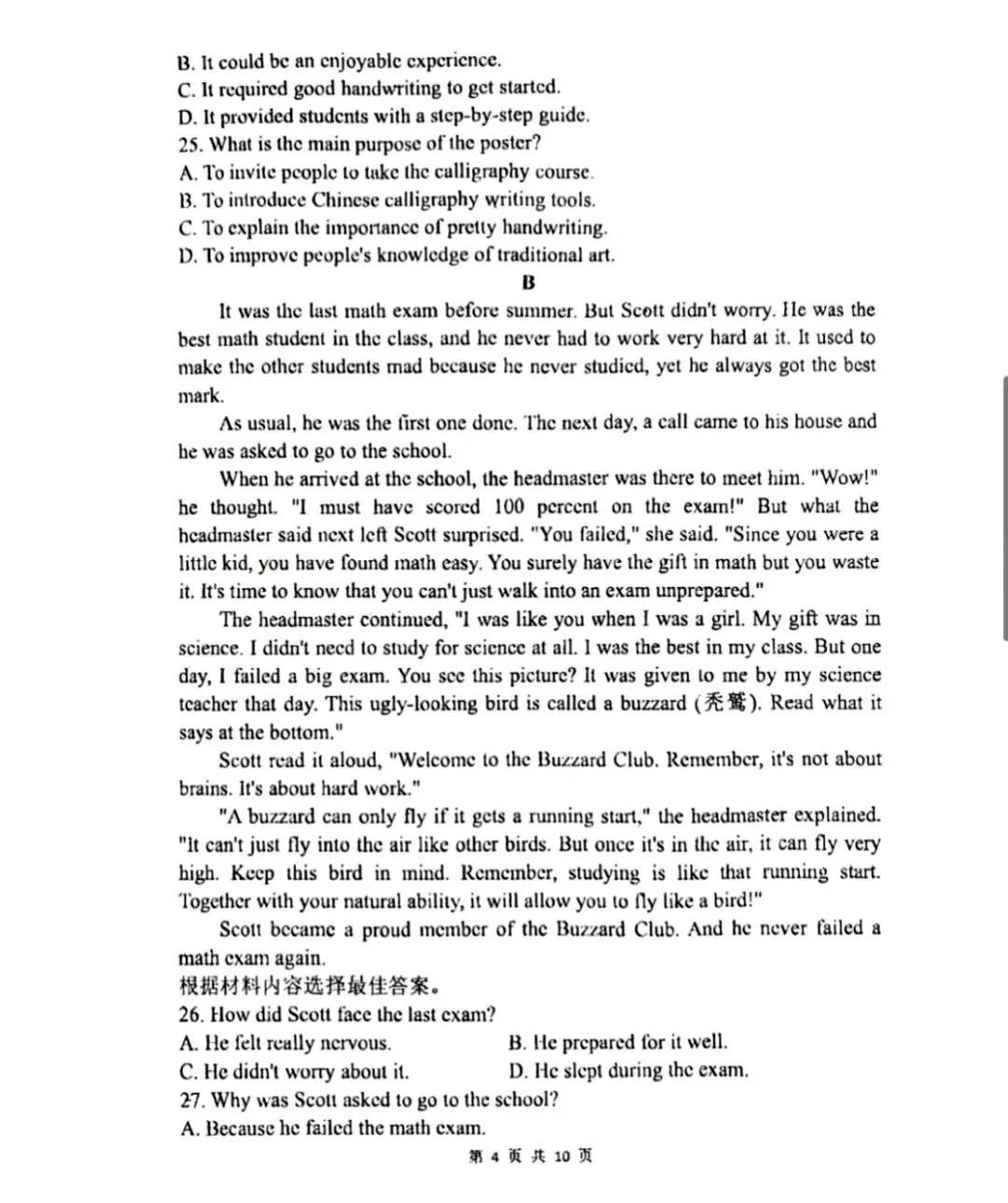 25-26郑州外国语中考一模试卷(附听力及答案)