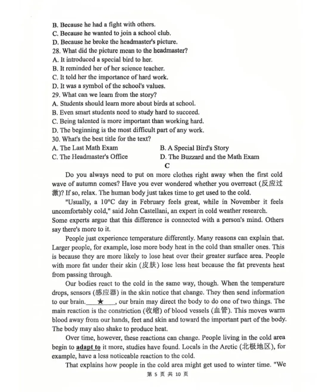 七年级语文下册期中试卷·现代文阅读