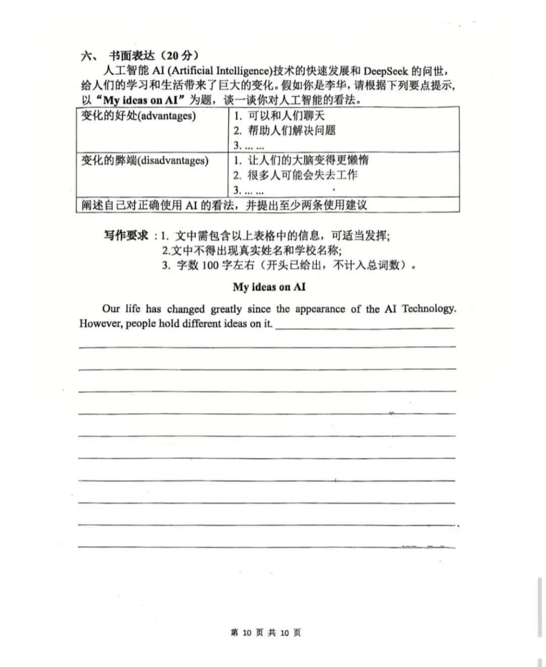 2026年中考预测(一模)试卷及答案(七科)