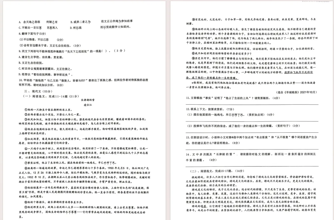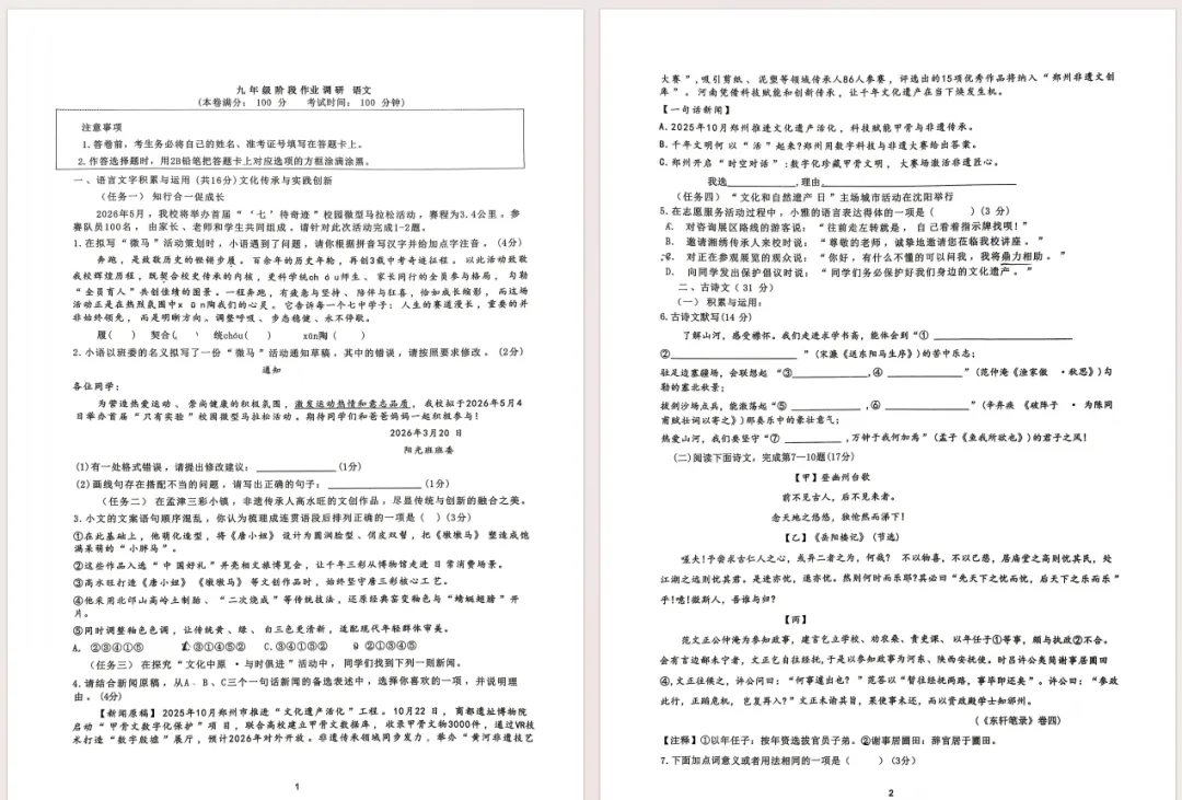 2026年沈阳市某校九年级内部模拟语文试卷及答案
