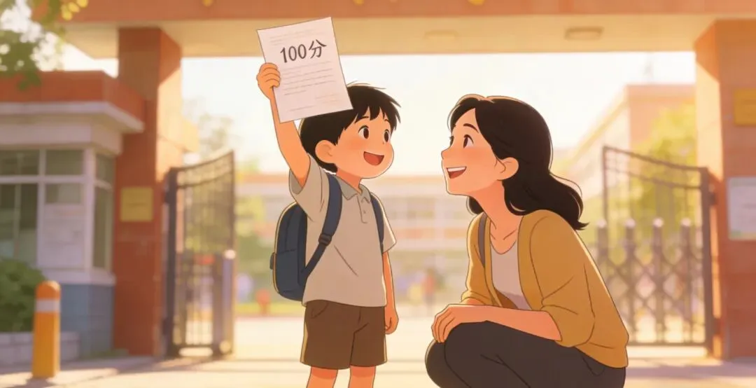 放学的铃声刚落,校门口的人群里,我一眼就瞥见了那个蹦跳的小小身影。往常放学总慢悠悠晃着的他,今天却像揣了颗小太阳,背着书包一路小跑扑到我怀里,小脸蛋红扑扑的,举着试卷的手都在轻轻晃,脆生生的声音满是藏不住的雀跃:“妈妈!语文测试我考100分啦!”