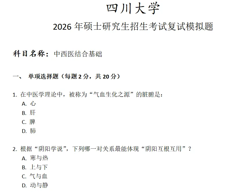 >四川大学中西医结合基础考研复试真题模拟