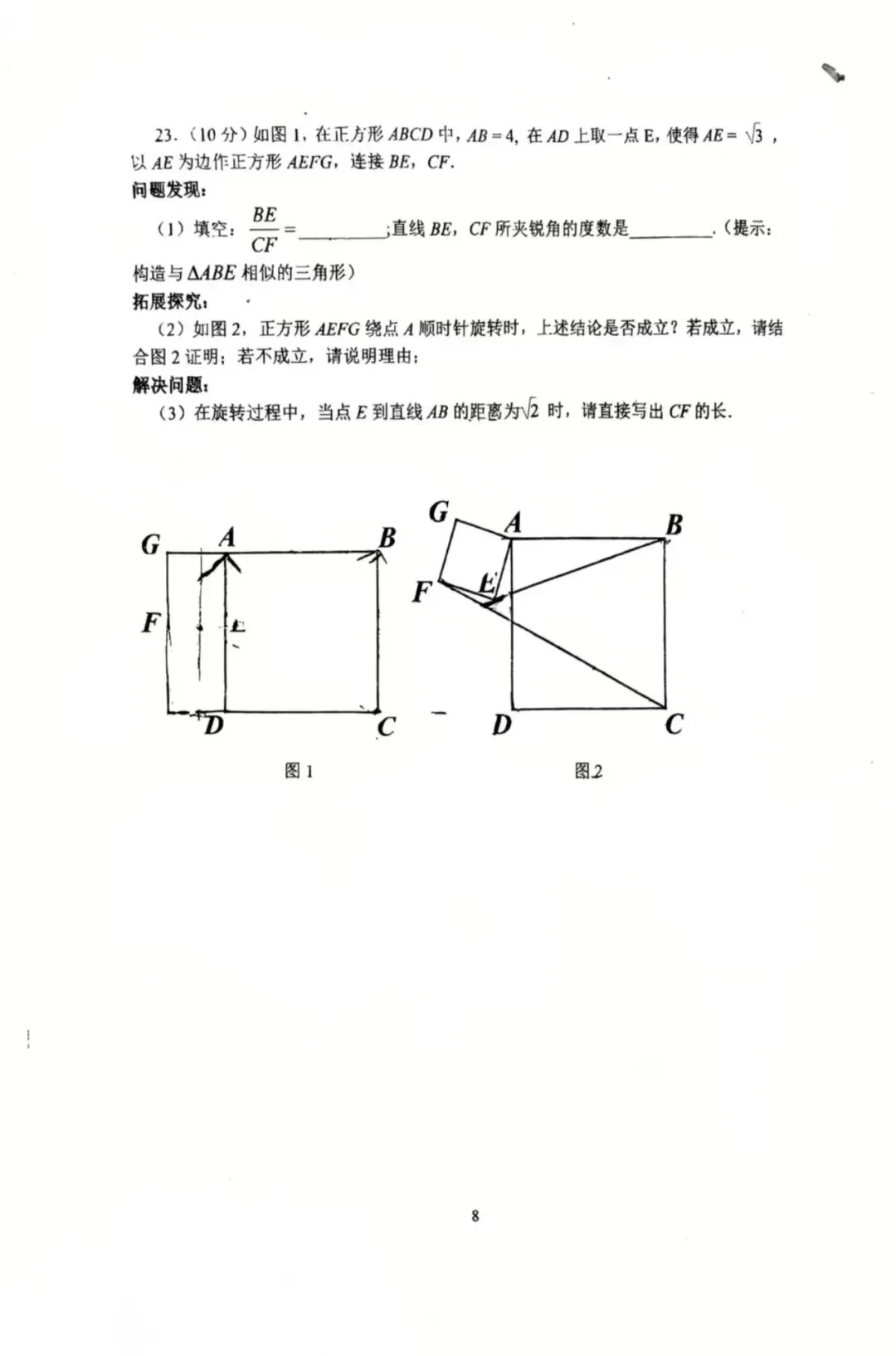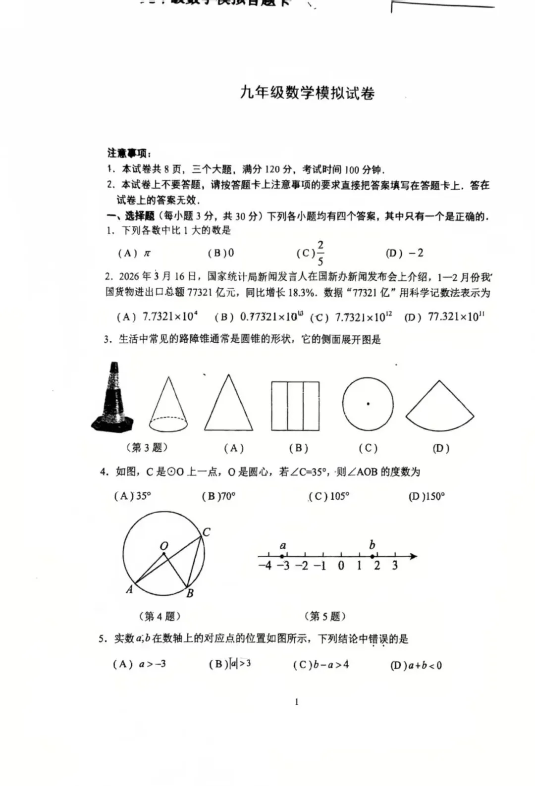 >2026枫杨、惠外中学九年级数学模拟试卷
