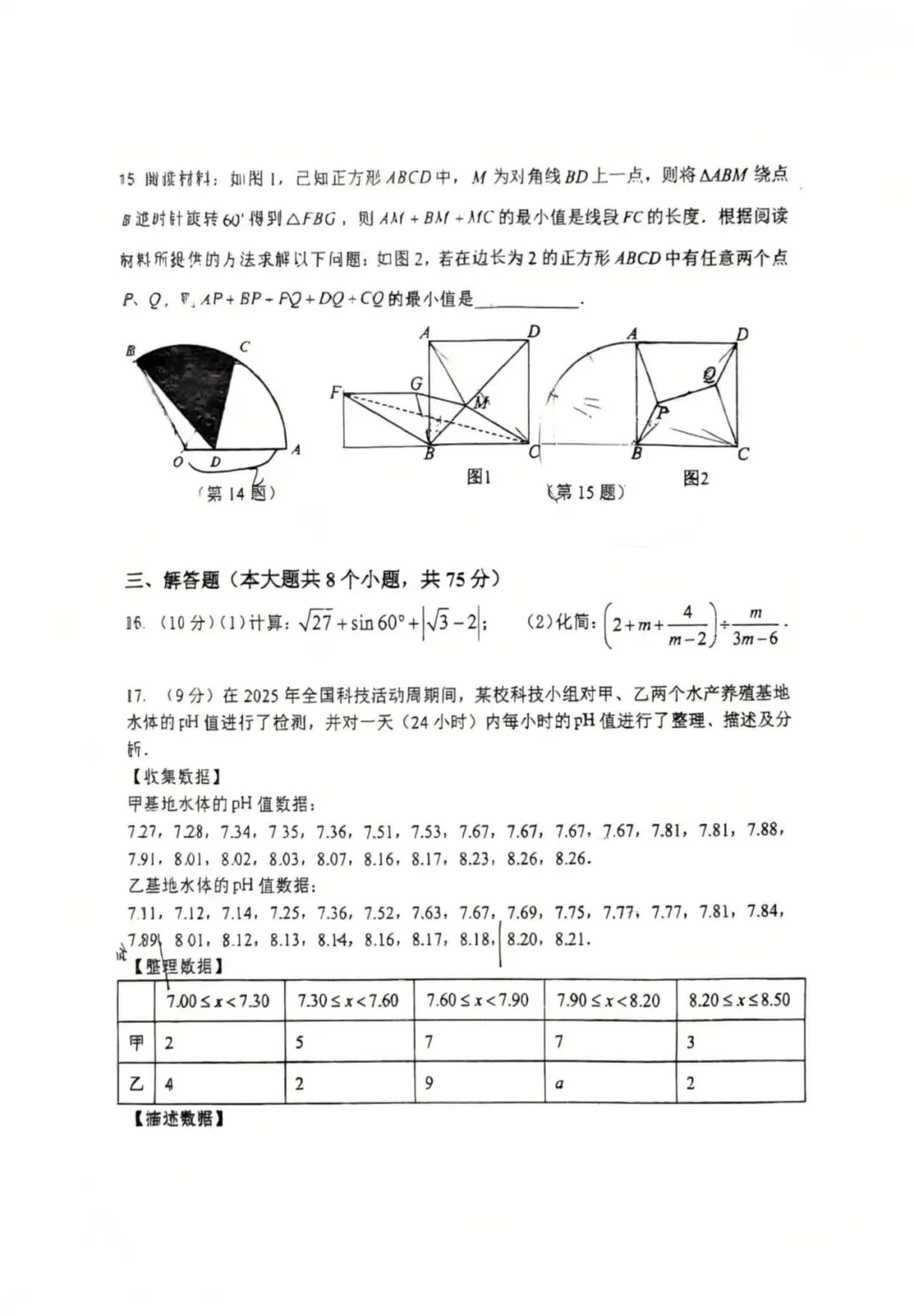 【4月中考试卷速递】2025-2026学年河南大学附属中学九年级下学期3月一模测试(语数化)高清版下载