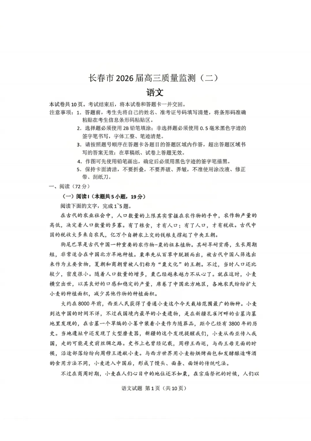 超全汇总!【试卷+答案】2026【长春二模】长春市2026届高三质量监测(二)全科试卷,系统练习、分析都方便,复习更有针对性。整体看看试卷,总结总结各类题型的答题技巧,考试就能多得几分。