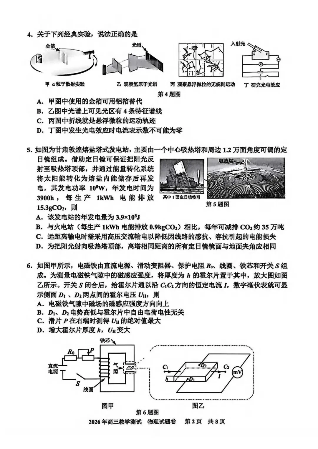 2026杭州二模|浙江杭州4月二模全科试卷+答案教学质量检测二【杭州二模】