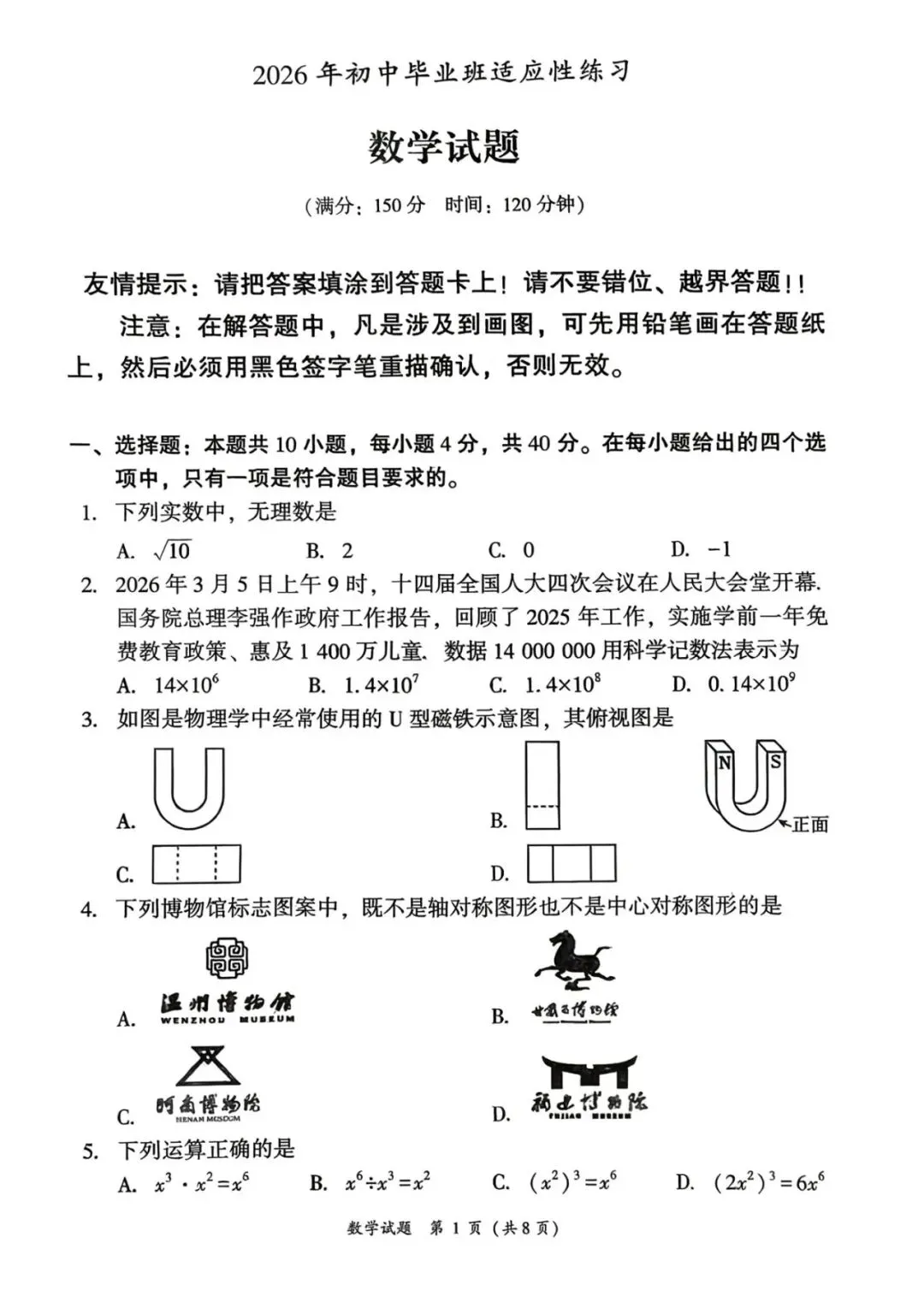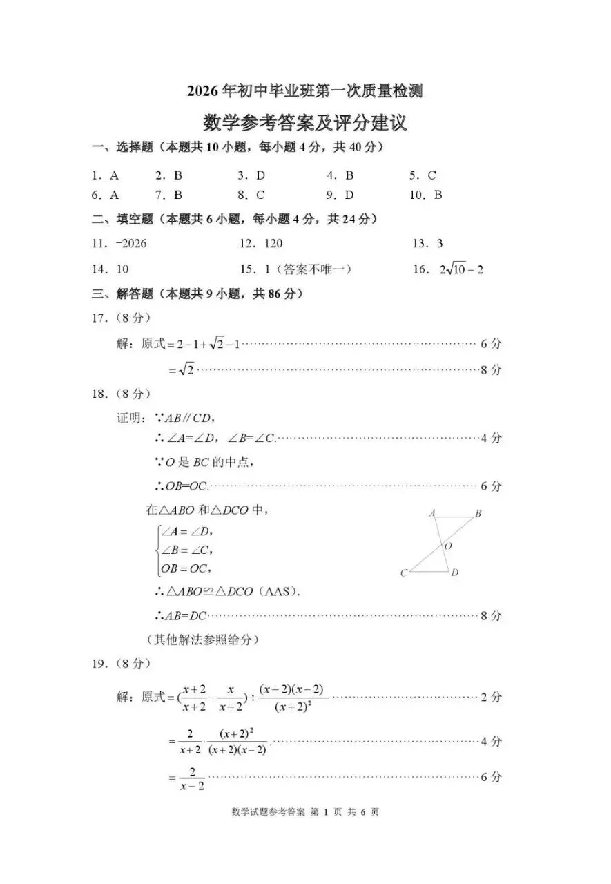 【4月中考试卷速递】2025-2026学年河南大学附属中学九年级下学期3月一模测试(语数化)高清版下载