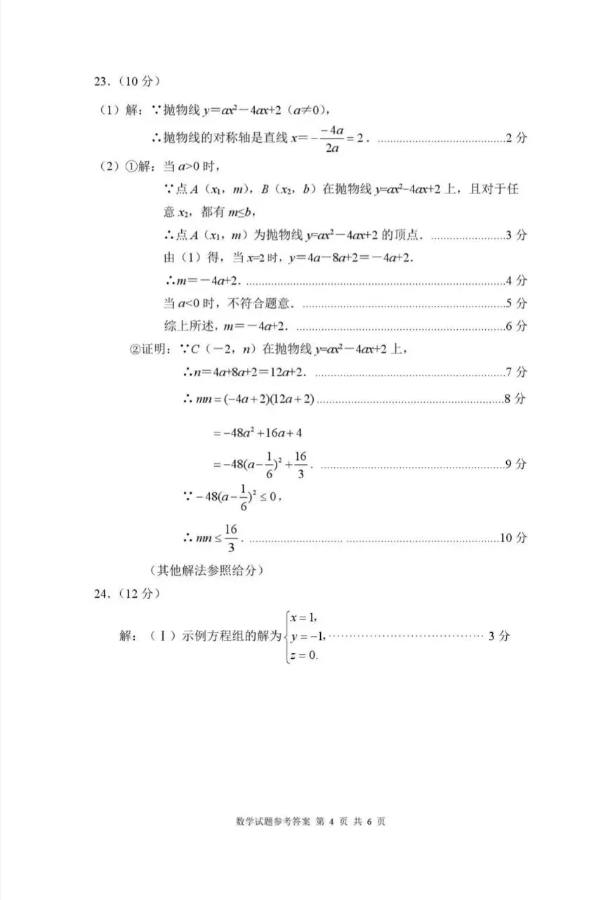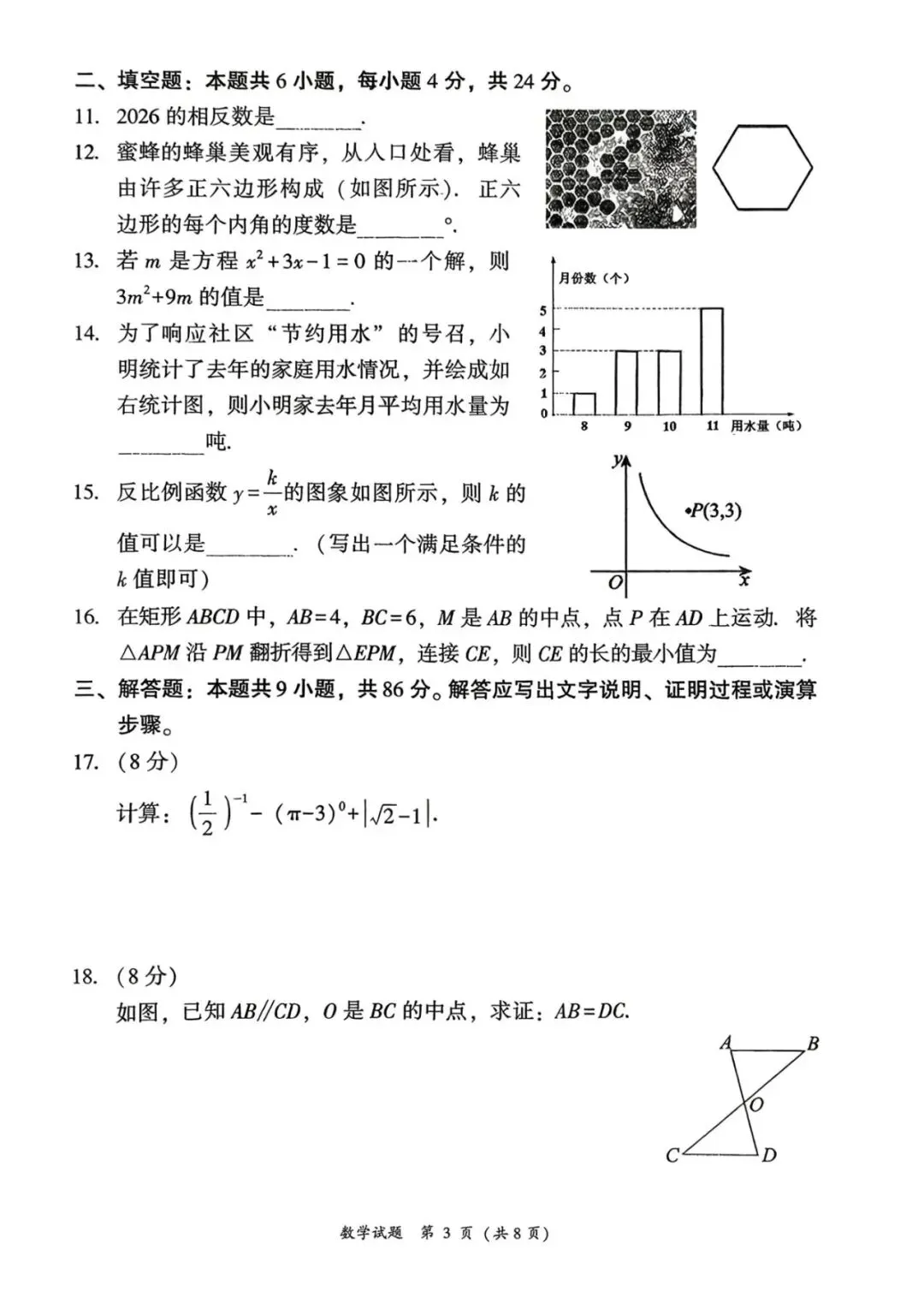 >26.03漳州毕业班适应性练习数学试卷及答案