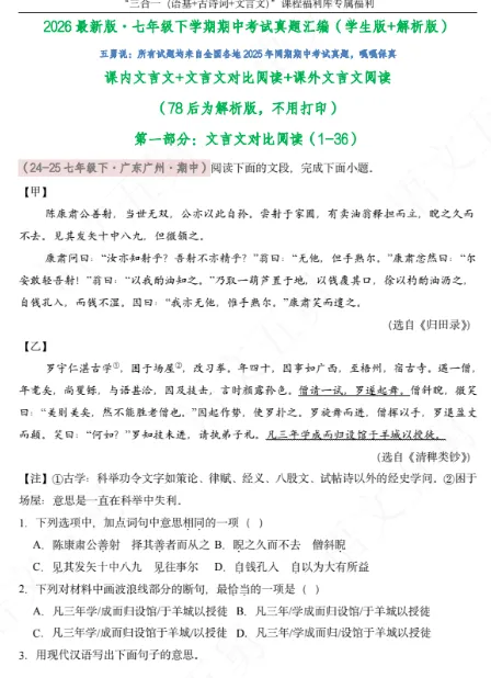 | 小四门 | 一遍过 | 初中必背 |