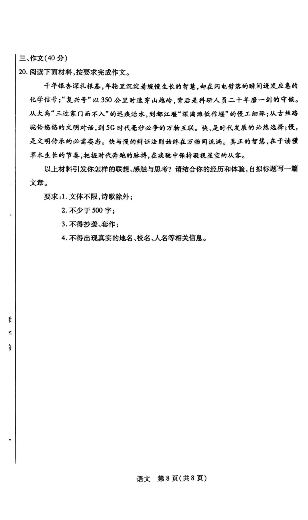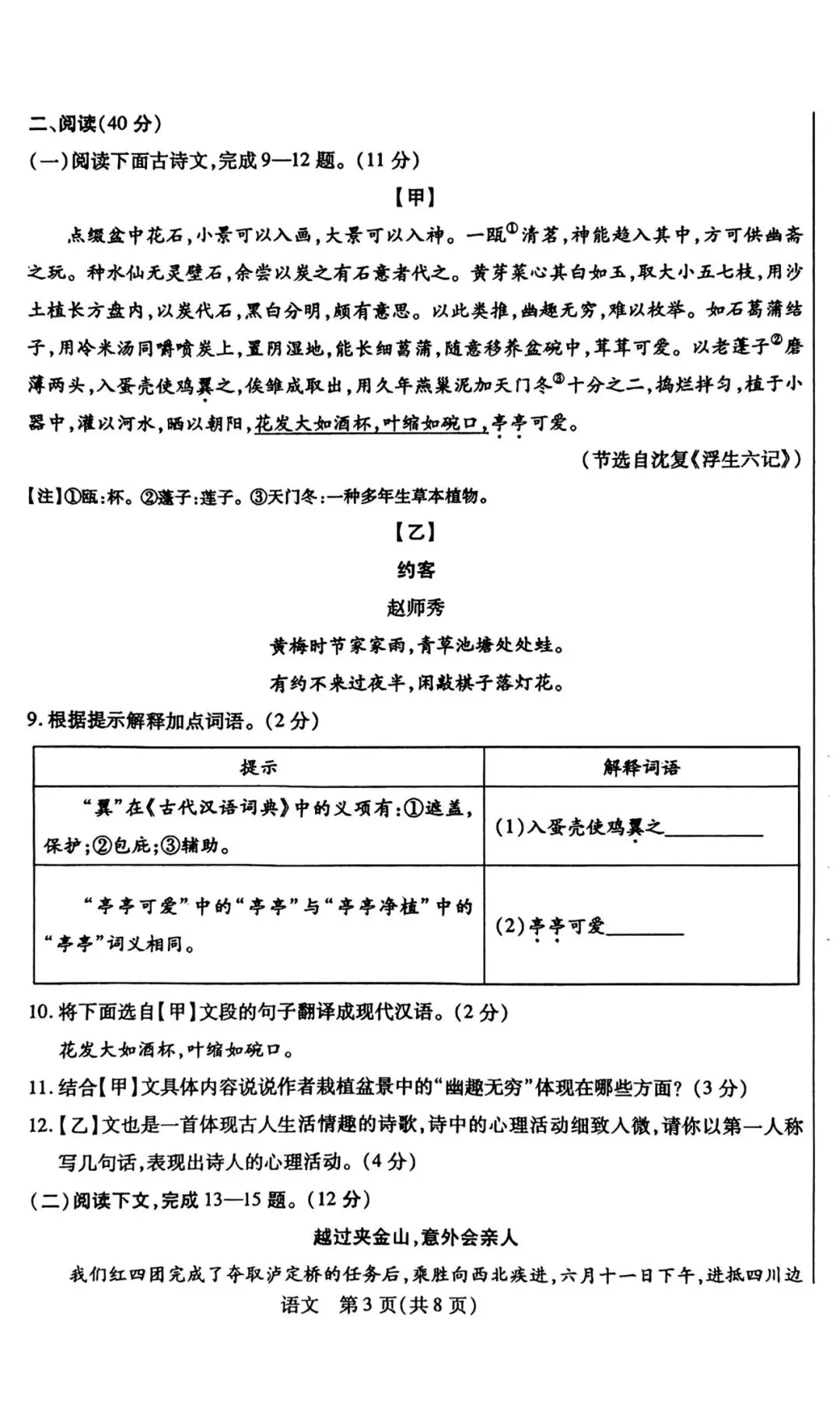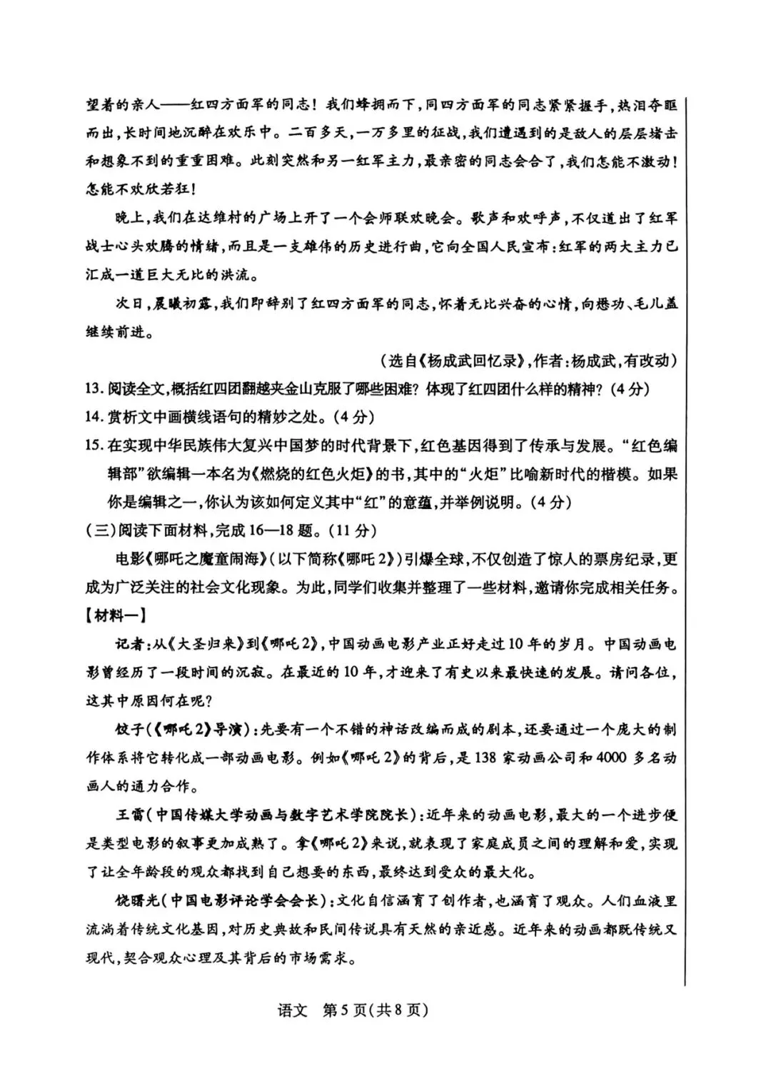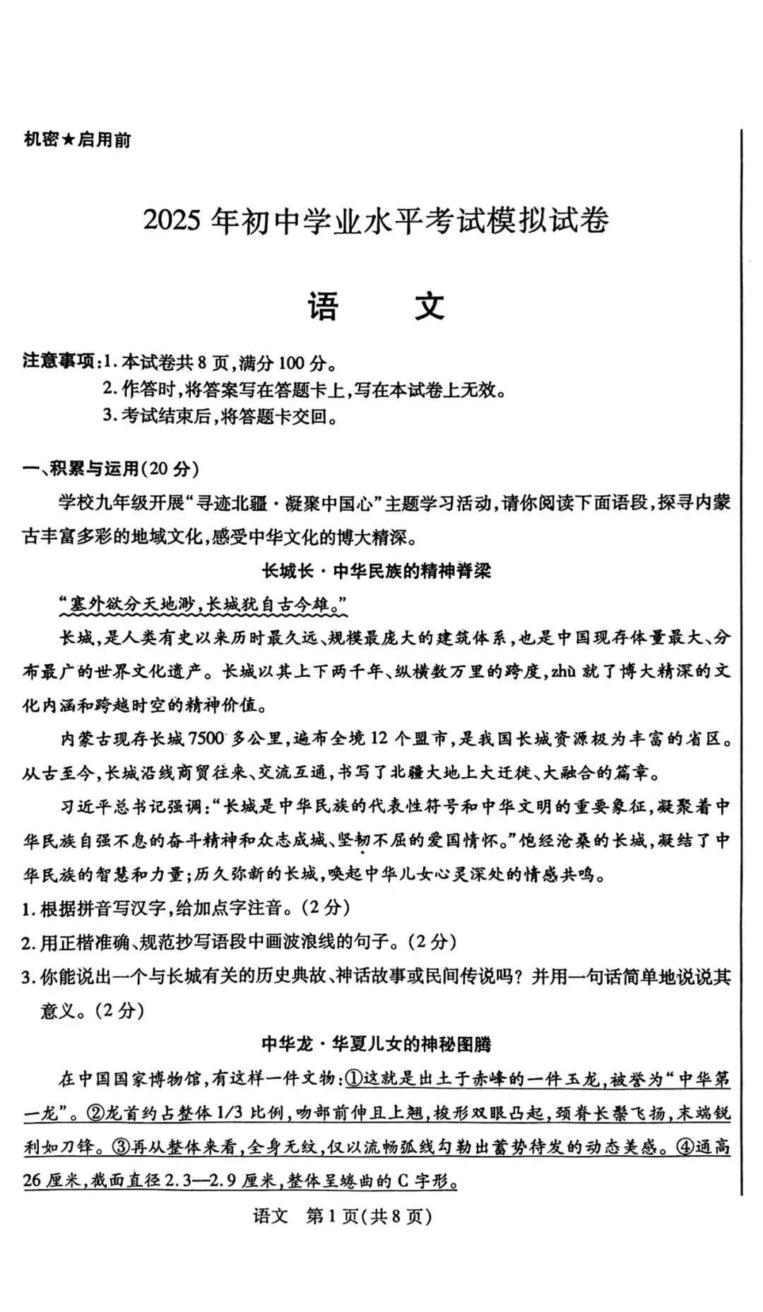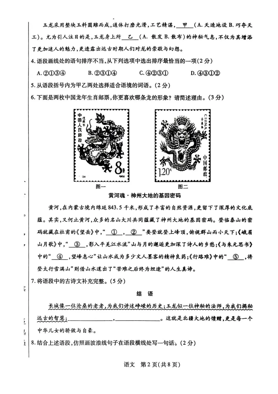 2026年河北中考唐山市一模语文试卷