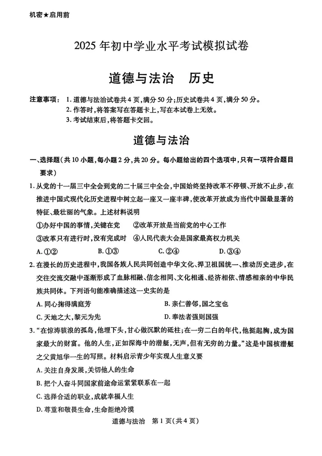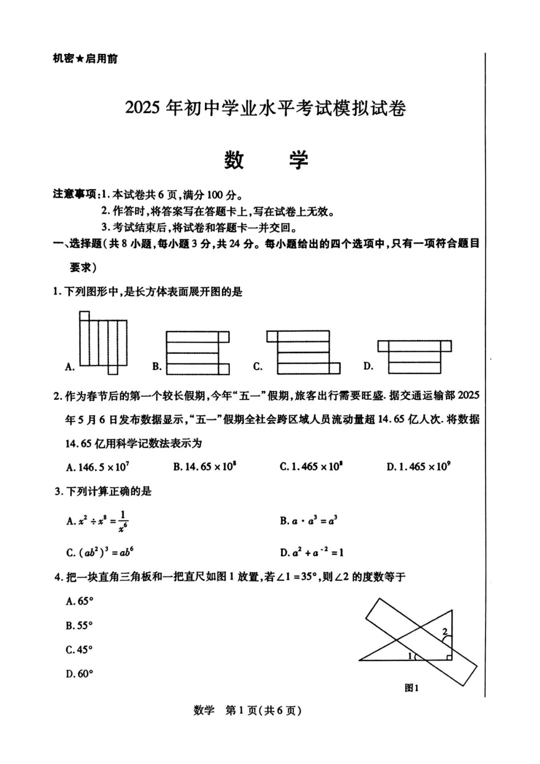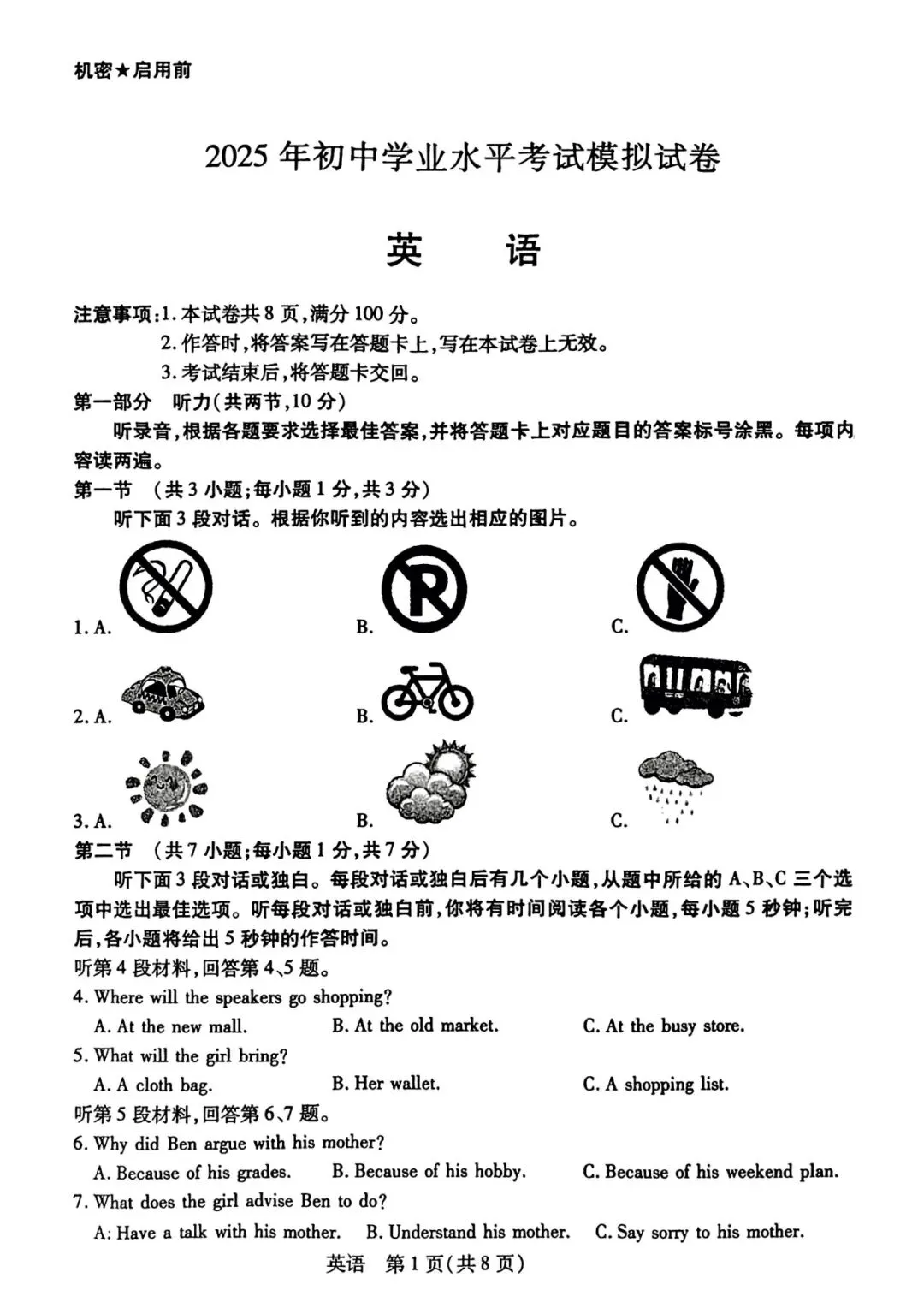 2025年广东省初中毕业生学业考试试卷(Word版可下载)