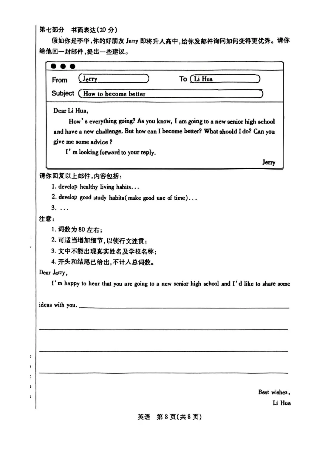 宝贝的试卷改错
