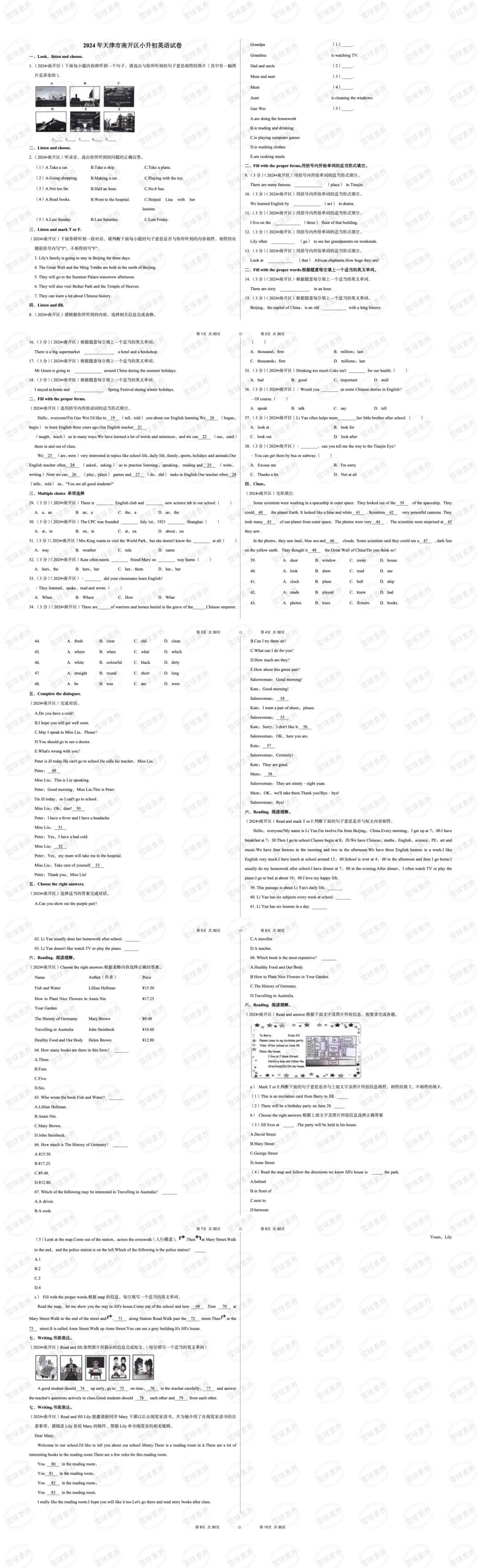 >2024年天津市南开区小升初英语试卷