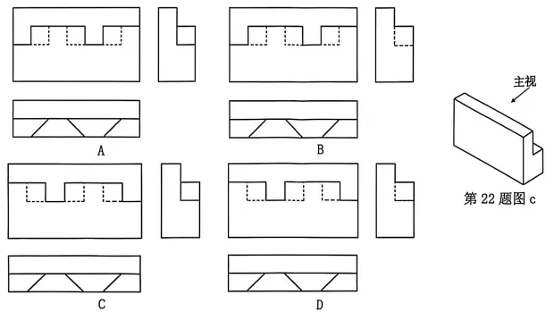 22.下列关于构件2(如图c)的三视图,符合投影规律的是()