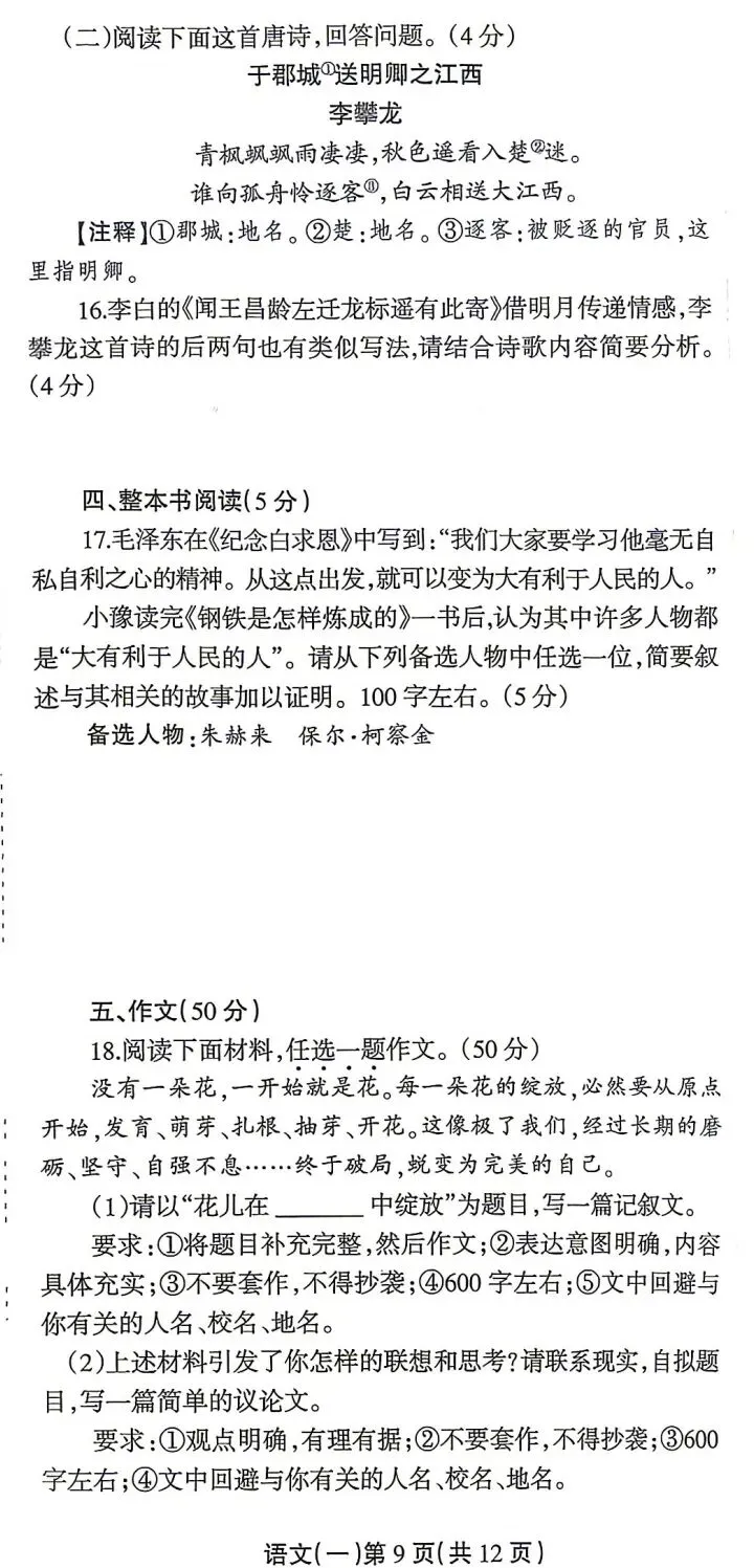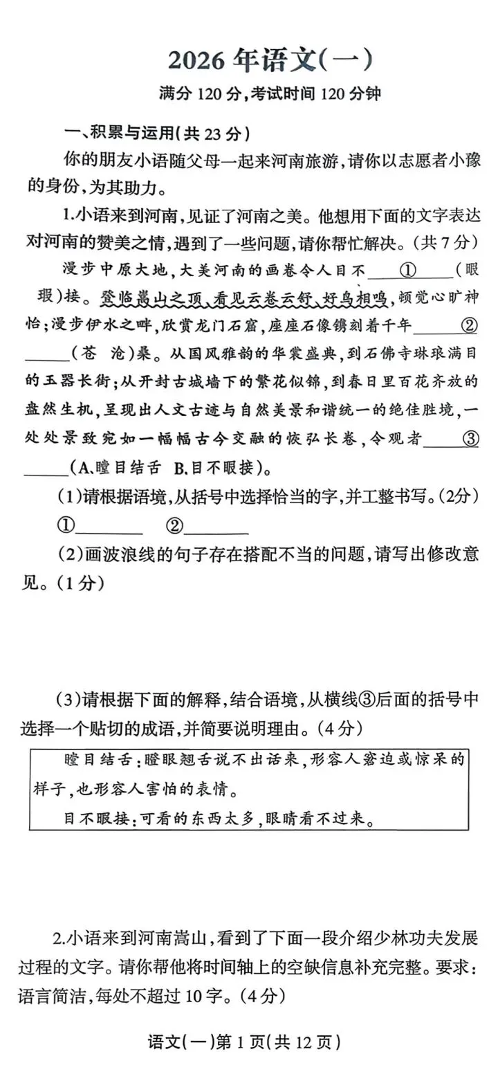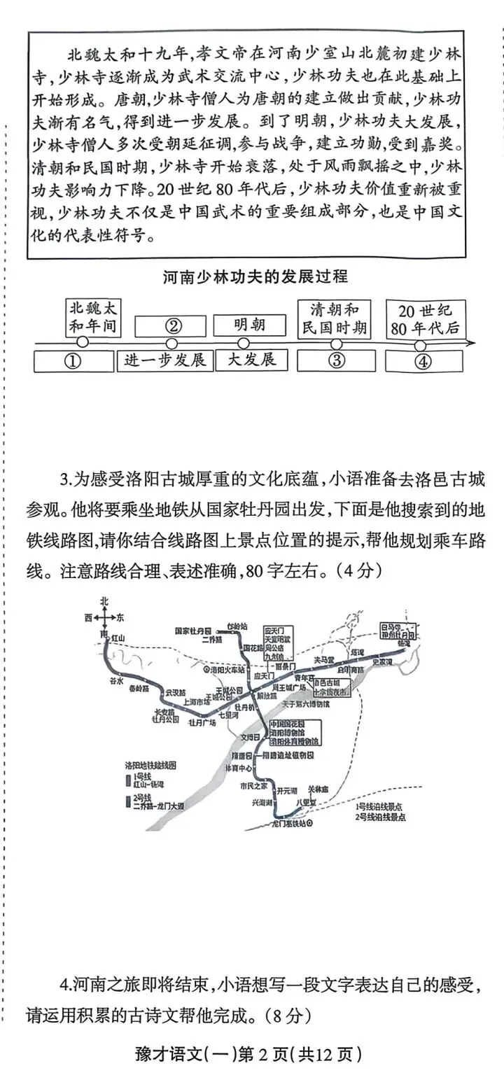 情境新颖,融入河南本土文化,题目不偏不怪,难度适中,有梯度、有区分度。