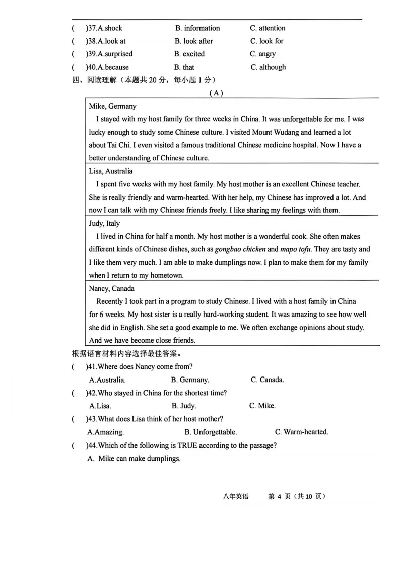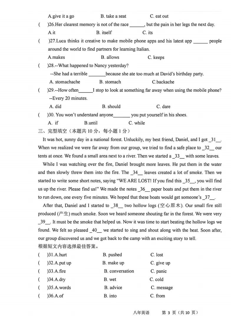 >2026哈113中学八下英语3月月考试卷及答案