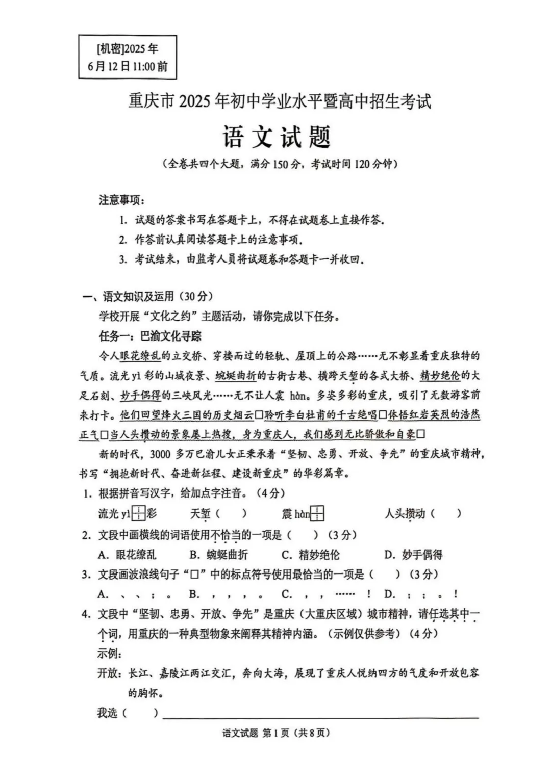 2025 广州中考道法真题试卷 完整版含解析|高清可下载